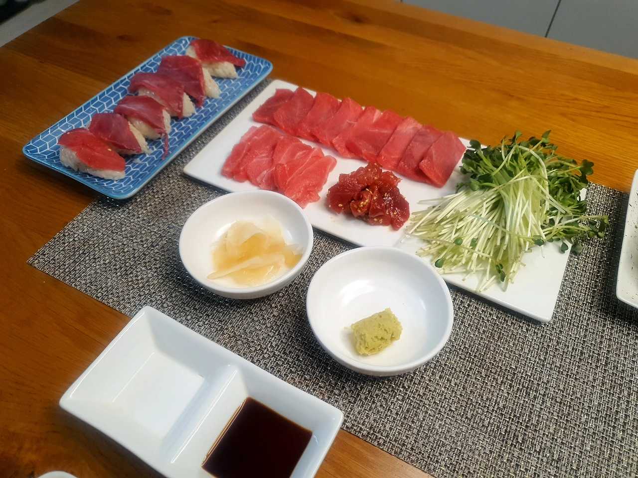 참치회란 이름으로 팔리는 눈다랑어, 황다랑어, 황새치등과는 전혀 다른 맛의 참다랑어를 집에서 즐기는 맛은 색다르면서도 가끔은 참치회를 먹는건지, 소고기육회를 먹는건지 모르겠다며 기분 좋은 너스레를 떨게 하는 경우도 종종 있다. 제대로 맛난 참다랑어 한점은 정말 기가 막히다. 항상 그런건 아니고, 기가 막히게 해동과 숙성이 적절하게 조화를 이루었을 때 말이다.