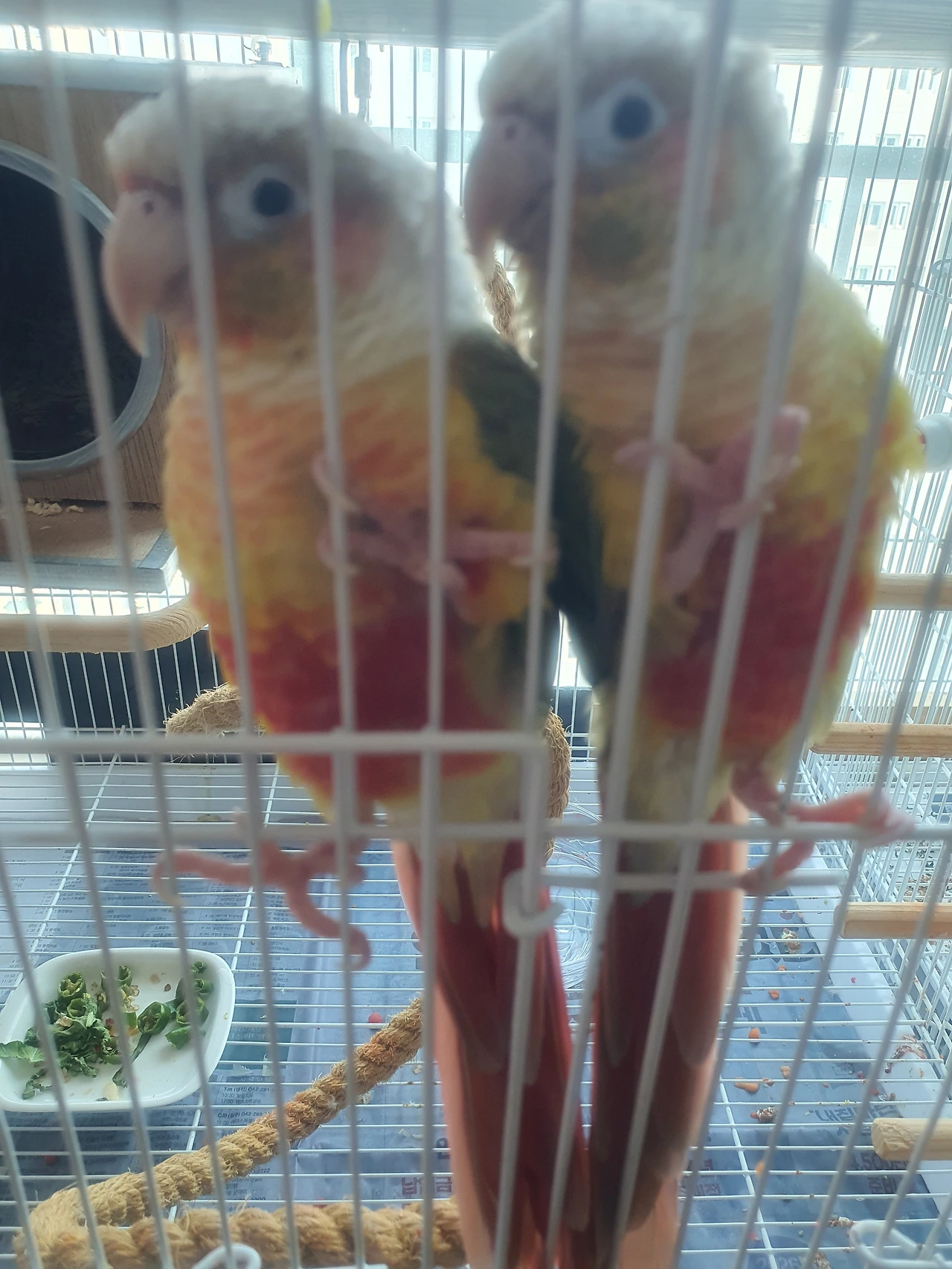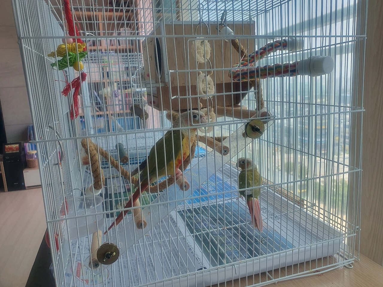 그렇게 3월에 코뉴어 파인애플종 두 마리를 집으로 들였다. 식구들의 강력한 반대에 어쩔 수 없이 우리 집 꼬마아가씨 방안에 새둥지를 마련하고, 혼자서 가족들에게 피해가 안 가게 돌보겠다고 다짐을 받았다.