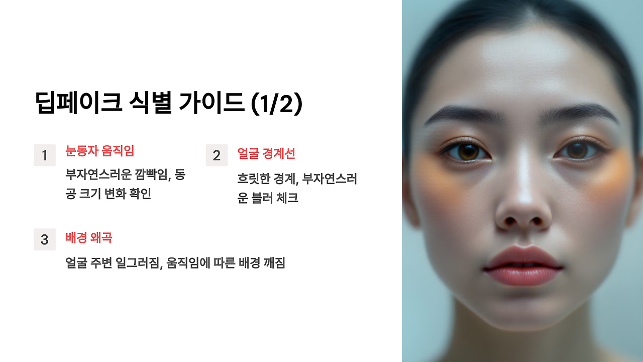 실제 사람의 눈은 평균 2-3초 간격으로 자연스럽게 깜빡인다. 하지만 딥페이크는 이 자연스러운 리듬을 완벽히 재현하지 못한다.