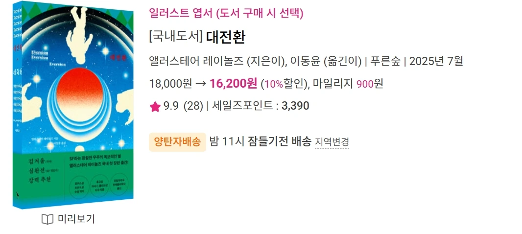 기대감이 컸는지 아쉬움을 많이 토로한 것 같다. “그렉 이건, 테드 창을 잇는 매력적인 저자”라는 출판사의 소개가 만든 기대치에 의해, 그 여느 때보다 집중하며 읽었지 않았나 싶다.