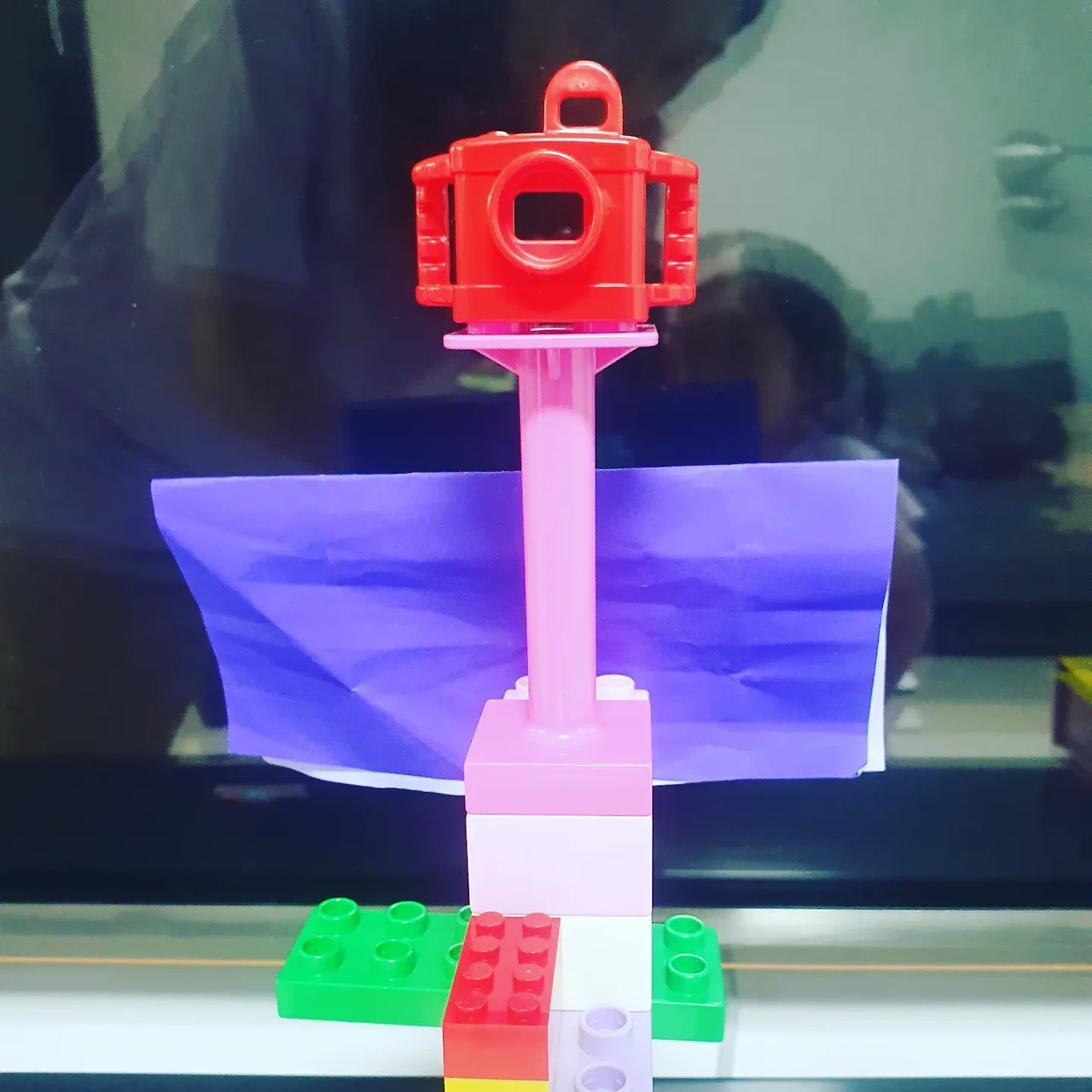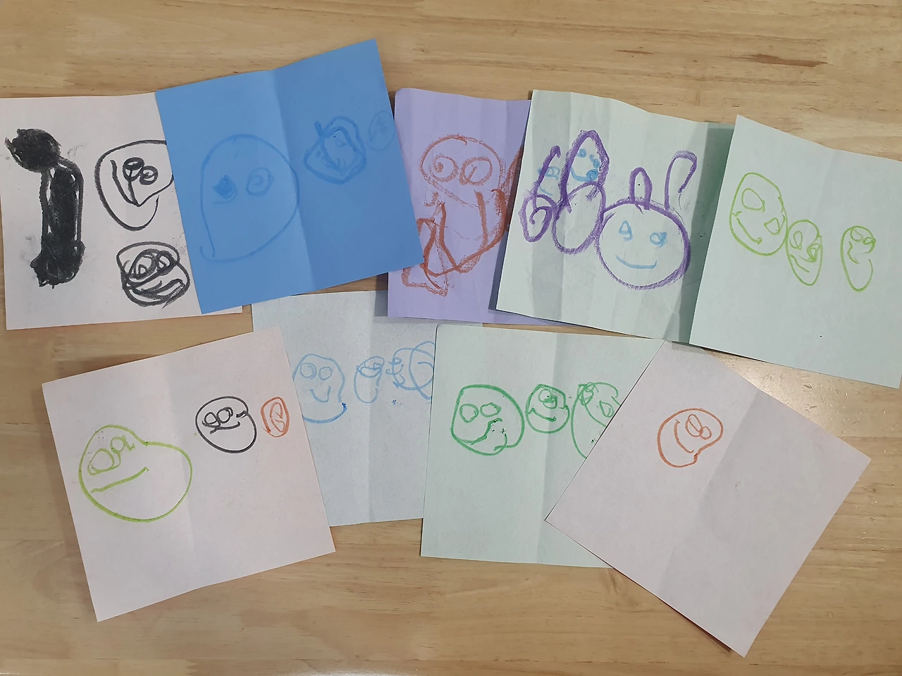 "Say cheese~"를 외치며 야무지게 손가락으로 V자도 만들고서는 다시 레고 카메라로 달려가 색종이를 빼들고는 크레파스로 그림을 그려서 보여준다.