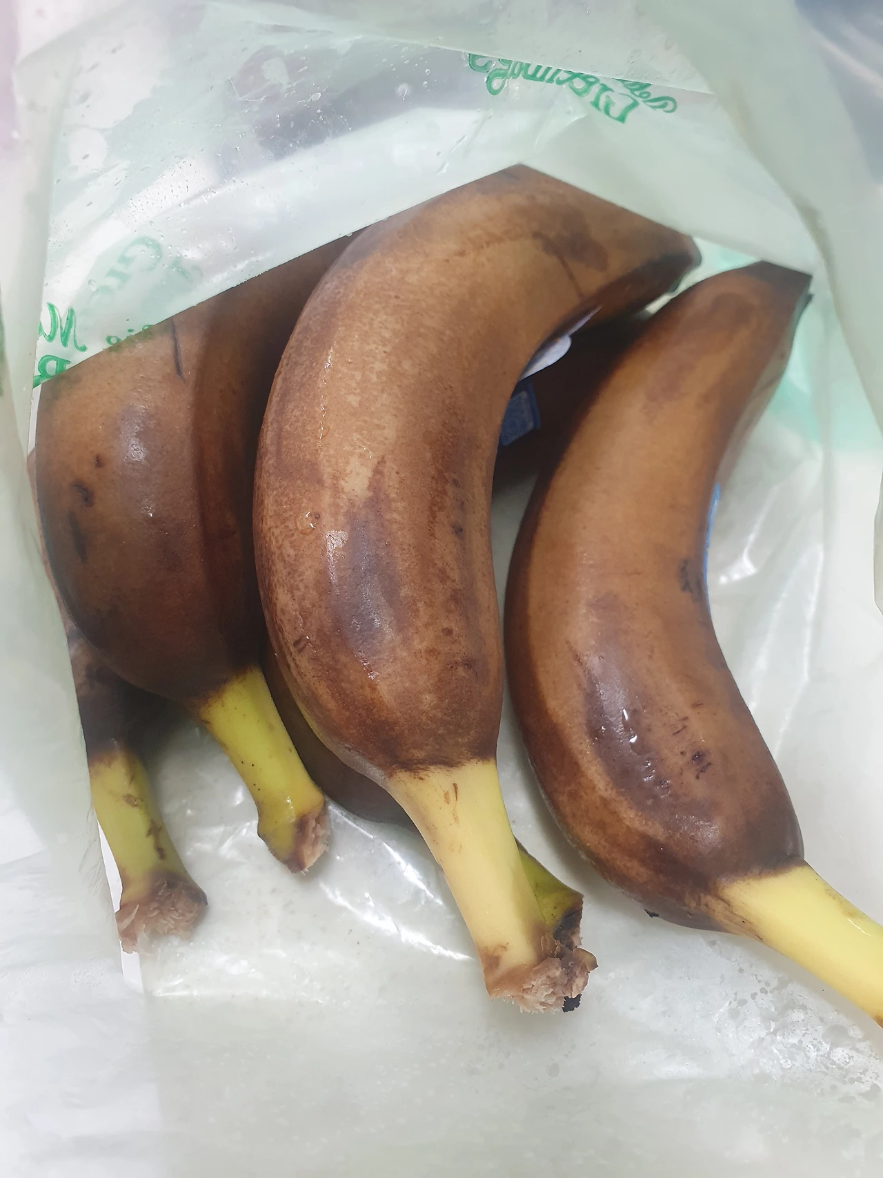 이렇다 보니, 우리 집에는 싱싱하고 노란 바나나도, 과하게 익어 껍질이 벌어진 바나나도, 그리고 이제 더 이상 안 되겠다 싶어 냉장고에 들어가 갈색으로 변해버린 바나나가 동시에 존재하는 기이한 현상이 발생한다.
