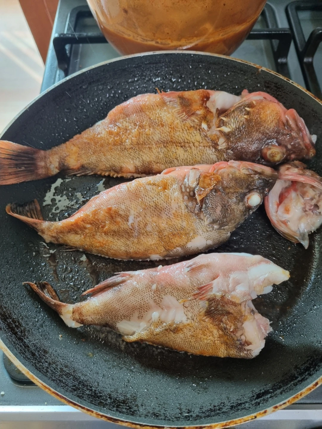 듬성듬성 천일염을 뿌려 노릇하게 구워낸 쏨뱅이는 천하일미임에 분명하다. 열기도 맛있고 볼락도 맛있지만 쏨뱅이는 수륙양용, 매운탕과 구이에 모두 적합하다. 그놈이 그놈인가? 원래는 매운탕을 끓일까하다가 엊그제 차례상에서 꿍쳐둔 꽃돔과 침조기 잔해물로 ‘감국’을 끓여 먹었던 터라 오늘은 구이로 낙점이었다.