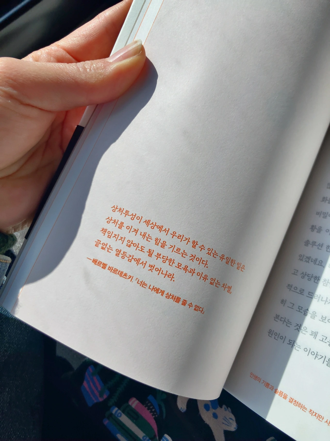 챕터가 바뀌는 사이에 저자가 다른 책에서 인용해 온 글들도 마음에 새기면 좋겠단 느낌을 받았다.