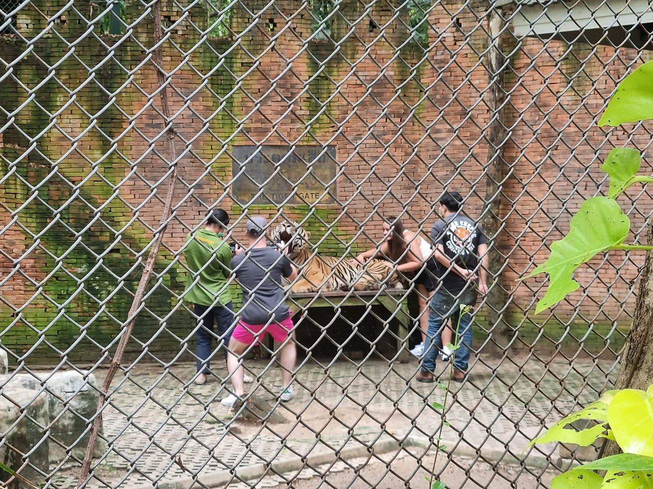 우리가 갔을 때는 서양인 커플이 체험 프로그램을 진행하고 있었다.사육사의 안내로 호랑이를 쓰다듬고 바로 옆에서 웃으며 사진을 찍는데 두려운 모습이 역력했다.사진을 찍다가 갑자기 호랑이가 일어나 어슬렁 거리자 남성 관광객은 절레절레 고개를 흔들며 사육사 뒤로 피하기도 했다. 몇 년 전 해외 토픽에 호랑이와 사진을 찍다 물렸다는 뉴스가 떠올랐다.