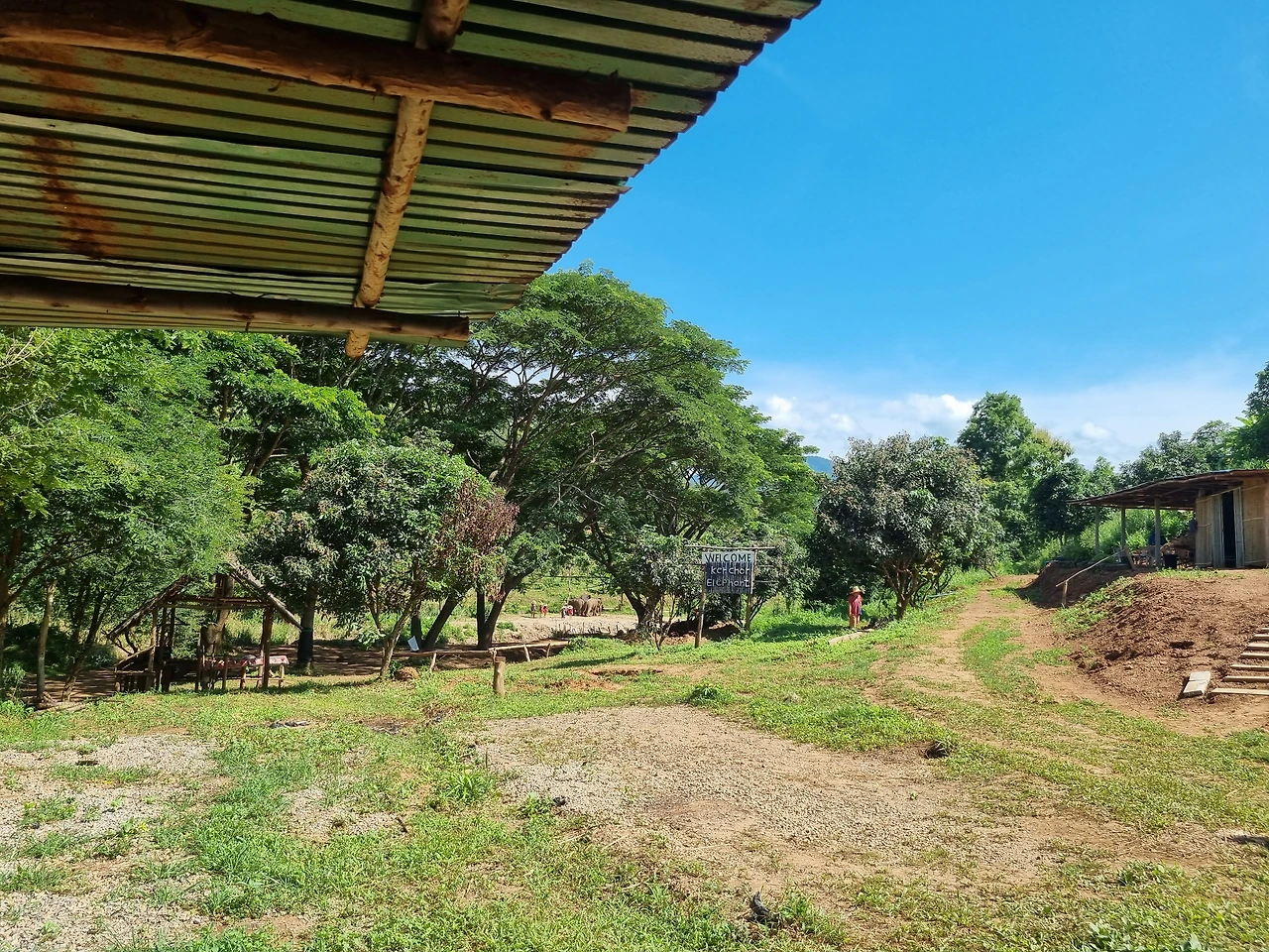 연식 20년은 더 돼 보이는 썽태우를 타고 비포장 산길을 달리기 시작했다. 작은 도랑도 지났다. 조금 과장하자면 정글로 들어가는 느낌이었다.아스팔트에 지쳐있던 아들이 하늘을 나는 기분으로 즐기고 있었다.잠시 후 멀리서 코끼리 머드 체험을 하는 사람들이 보였다.