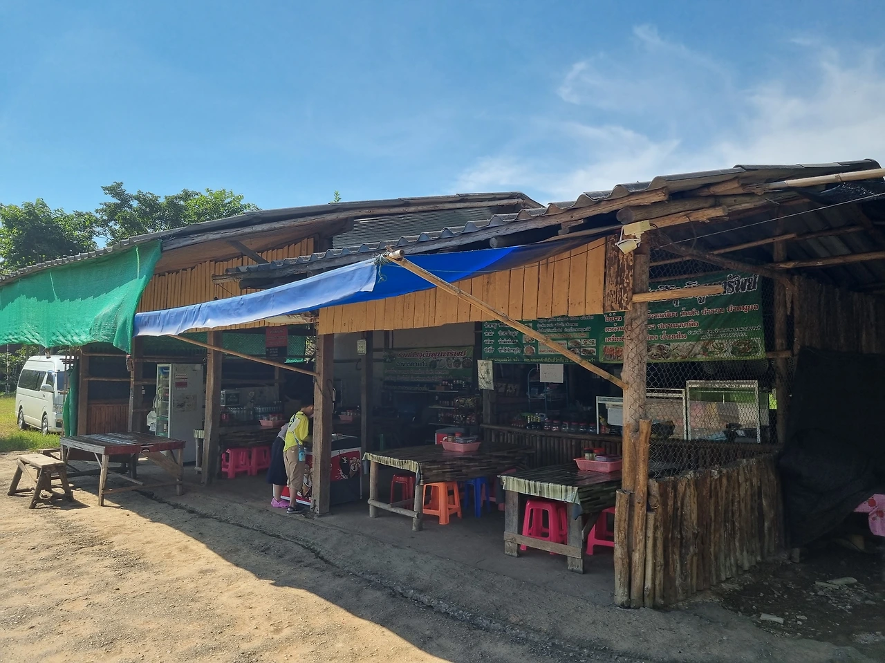 우리는 업체에서 알려준 접선 장소로 향했다.내비게이션을 보니 치앙마이 남부 '도이 인타논' 국립공원 산 자락까지 왔다.접선 장소는 산으로 올라가는 도로 옆 식당이었다. 시골 식당이지만 꽤 정갈했다.나중에 보니 이곳이 코끼리 체험이 끝난 뒤 점심 식사하는 식당이었다.식당 주인에게 얘기하니 10여분 후 업체 직원이 차를 타고 내려와 우리를 데리고 갔다.