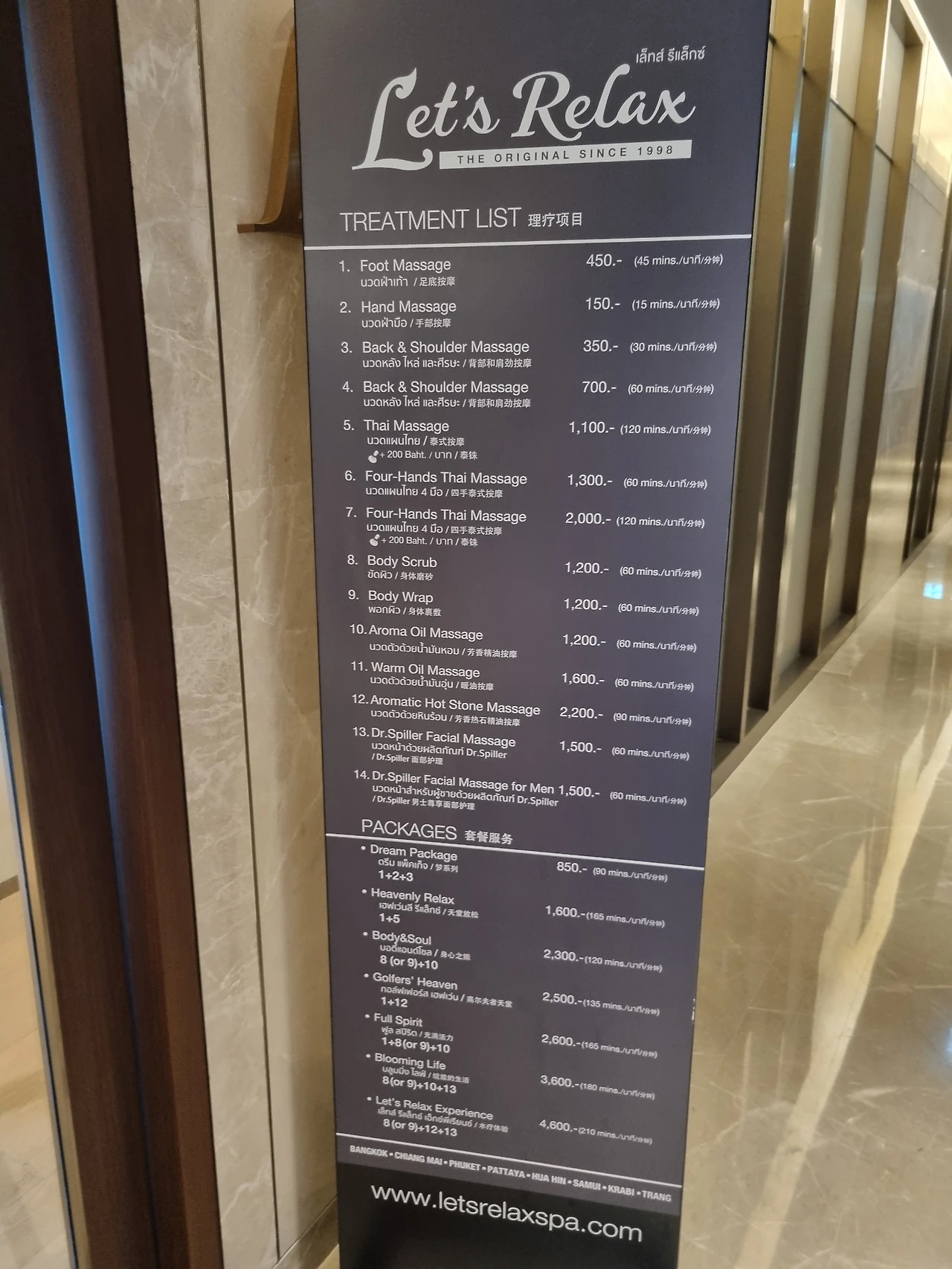 프랜차이즈 마사지샵 '렛츠 릴랙스', 이제 망해가는 듯하다. 평점이 낮아 의구심을 갖고 찾았는데 평점을 무시하면 안 될 것 같다. 그래도 코로나19 이전까지는 중간 이상 하는 마사지샵이었는데... 점점 마사지 스킬과 질이 떨어진다. 호텔에 입점해 있고 어느 정도 가격이 있어 기대를 안고 갔는데, 실망감만 안겨줬다. 다른 곳에 있는 렛츠 릴랙스도 평점이 낮았다. 다음에는 어디서든 렛츠 릴랙스는 패스해야겠다.