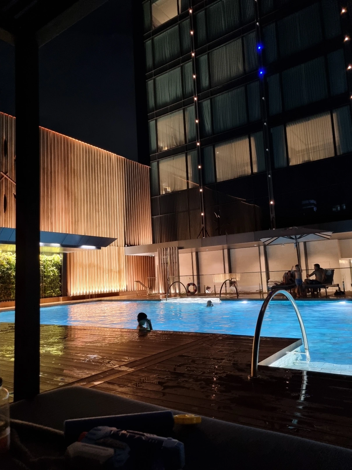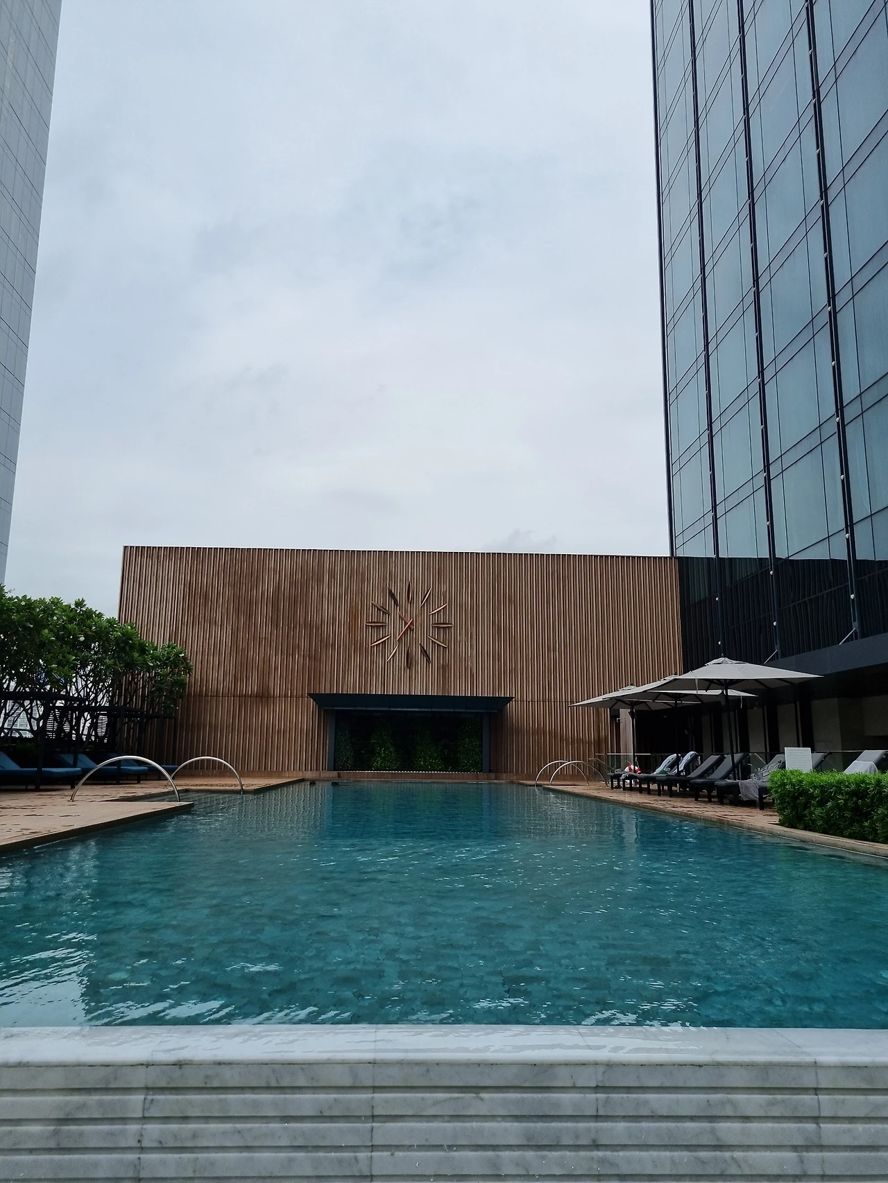 한 가지 아쉬운 점은 수영장 수질이다. 수영장은 10층에 피트니스 스튜디오(Fitness Studio), 렛츠 릴랙스(Let's Relax Spa)와 함께 있고 풀사이드 바도 있다. 규모는 엄청 크지는 않지만 그렇다고 작지도 않다. 도심 호텔 수영장이라고 생각하면 적당한 크기다. 문제는 수영장에 분비물이 너무 많다는 점이다. 관리는 하겠지만 마음 편히 수영하기는 좀 찝찝한 구석이 많다. 수영장 상시 배수가 되는 곳이 한 곳뿐이어서 그런지 배수가 안 되는 쪽에는 눈에 보이는 검은색 부유물과 다양한(?) 이물질들이 너무 많았다. 수시로 청소가 필요해 보였다.