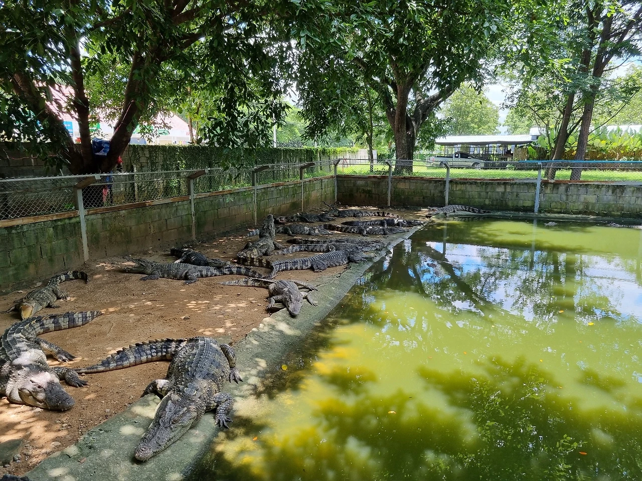 이제 히든 빌리지를 나왔다. 승마체험과 공룡공원 덕분에 여기 온 게 아깝지 않았다. 그랩을 불렀는데 잘 잡히지 않았다. 치앙마이 시외 지역은 아니지만 약간 한적한 곳이어서 그랩이 금방 잡히진 않았다. 어차피 급할 것도 없어 여유 있는 마음으로 주위를 둘러보니 입구에서 주차장을 바라보고 오른편으로 또 다른 입구가 눈에 들어왔다. 아들과 탐험하는 마음으로 들어가 보니 '크로커다일 사육장'이었다. 악어는 아들이 좋아하는 크고 강한 동물 중 하나이다.