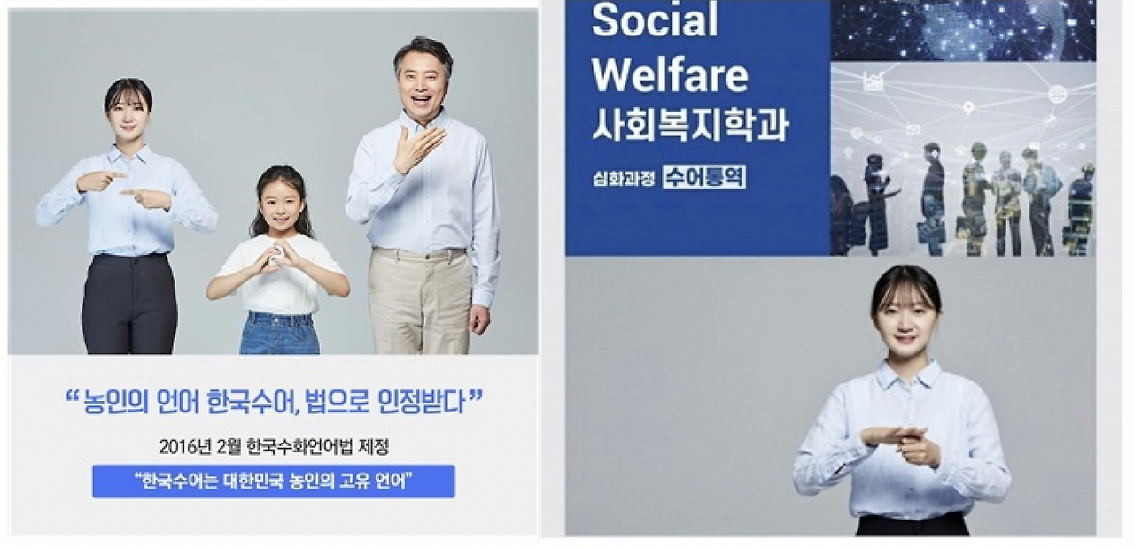 수어도 영어, 일본어, 중국어처럼 다른 언어랑 동등한 언어예요. 그런데 아직까지는 수어에 대한 인식이 '도와준다', '봉사한다' 이런 이미지가 남아있어서 농인을 '도와줘야 된다'라고 생각하는 경우가 있어요. 농인은 그냥 수어라는 다른 언어를 사용하는 사람이에요. 수어라는 언어를 사용하는 사람이기 때문에 수어 통역을 제공해주는 것뿐이고, 수어 통역사도 언어 통역사와 마찬가지의 개념인 거죠. 옛날에는 이런 인식이 적었다 보니까 수어 통역사를 '수어 봉사자'라고 생각하시는 분들이 있으신데, 이제는 하나의 독립된 언어인 수어를 사용하는 사람들을 위한 '수어 통역사'라는 점을 기억해주시면 좋을 것 같습니다.