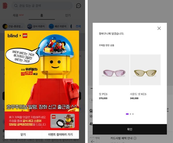 * 스낵바: 작업 완료 상태와 함께 액션 버튼을 제공 (실행 취소, 관심 상품으로 이동, 삭제 등)