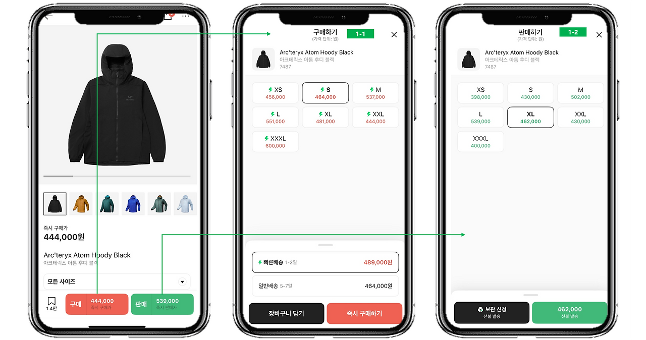 리셀 마켓에서 '회원'은 '구매자'가 되기도 '판매자'가 되기도 한다. 해당 상품 상세 페이지는 구매를 유도하느 한편 판매를 유도하는 역할을 수행한다.