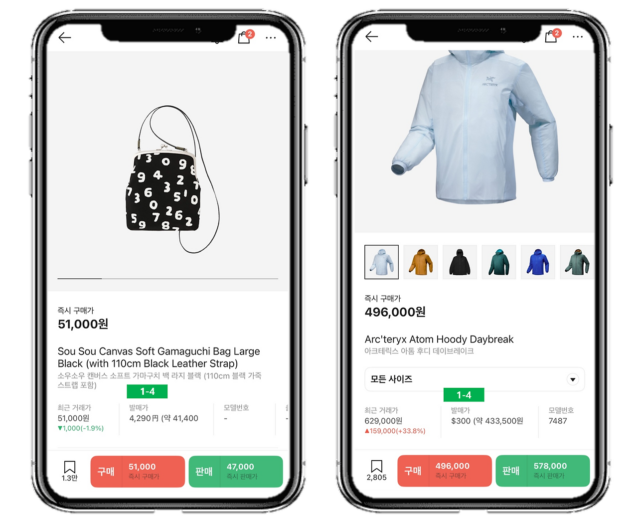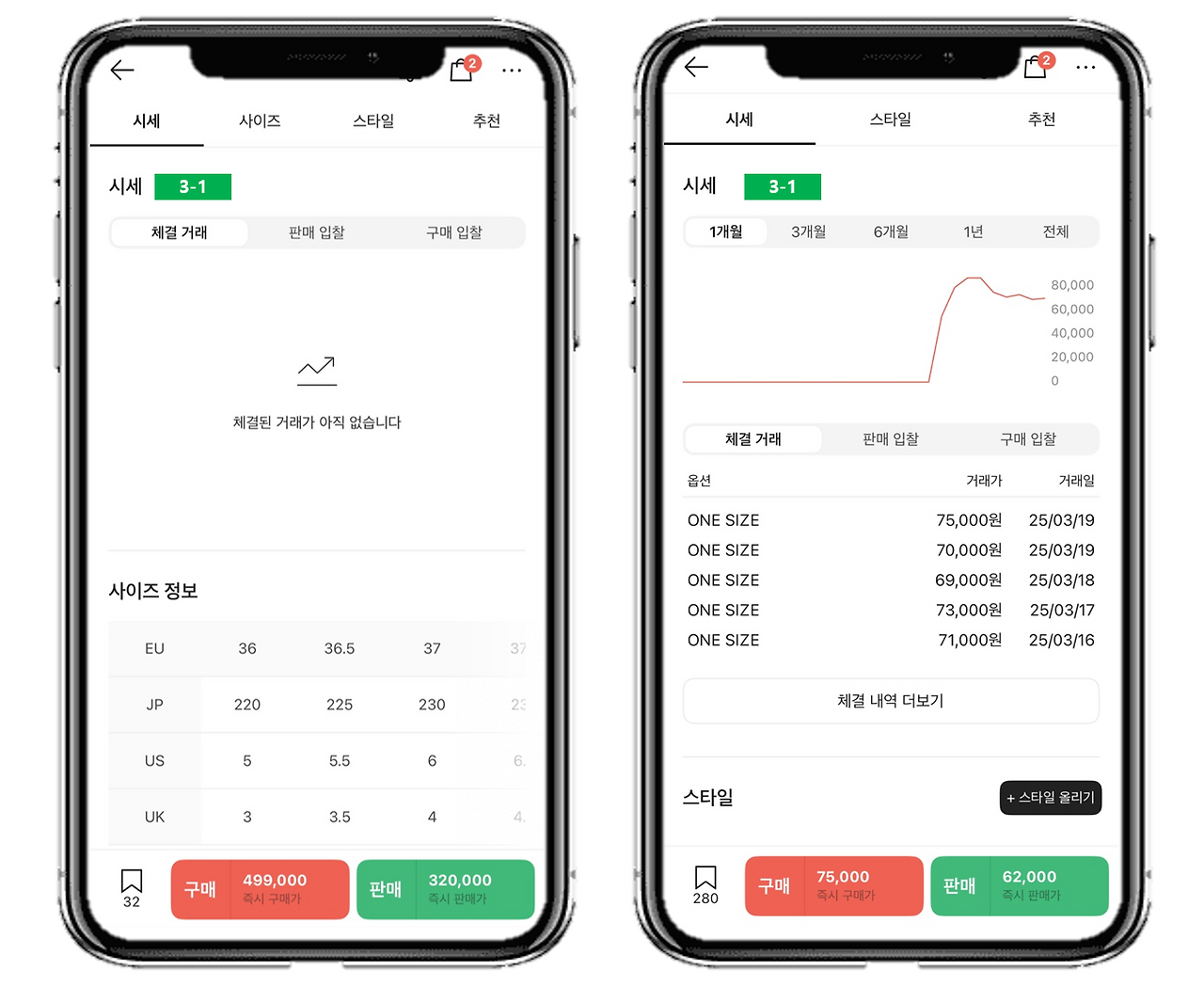 가장 최근에 판매된 상품의 가격을 노출한다. 보통 커머스에서는 반품, 취소를 고려하여 구매 확정 이후로 집계하나 리셀의 특성 상 거래 완료를 기준으로 집계되는 것으로 보인다.