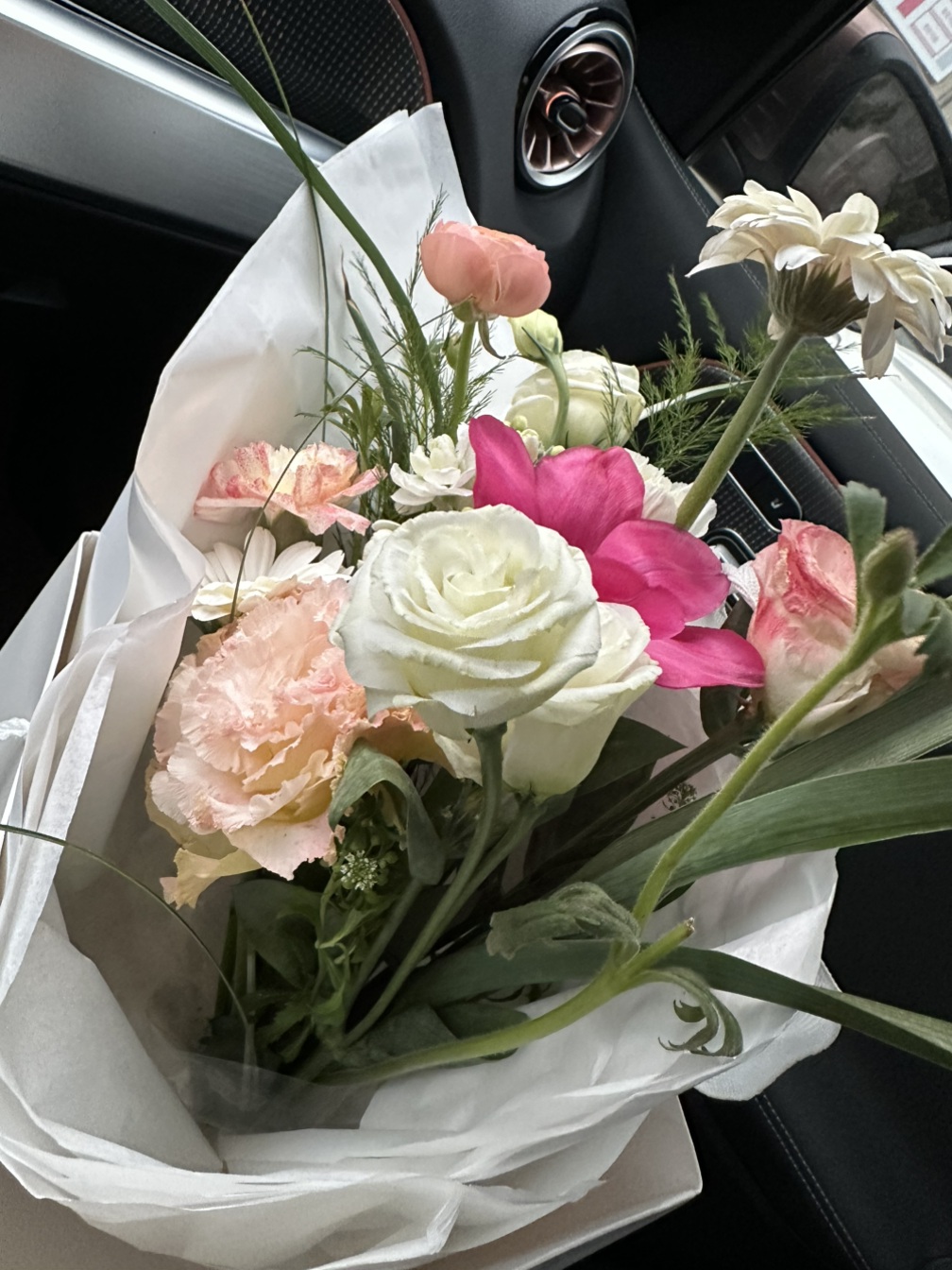 예쁜 꽃다발도 아침 일찍부터 가지러 갔다.