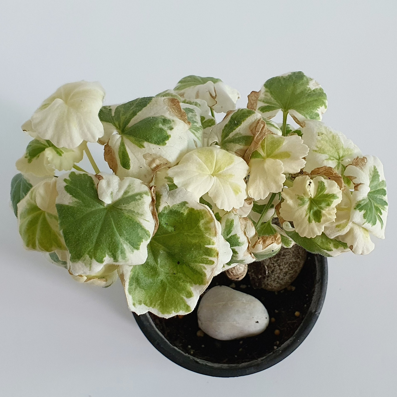 아무리 서늘한 곳에서 관리한다고 해도 우리나라의 여름을 넘기기란 쉽지 않을 것이다. 무늬가 있는 팬시 제라늄의 경우 다른 일반 제라늄에 비해 녹색의 비율이 여름에 더 줄어들게 된다. 엽록소가 없는 흰 부분은 빛과 수분에 취약하여 빛에 화상을 입고, 토양 속의 수분을 원활하게 배출하지 못하거나 너무 건조하게 되면 잎이 갈변된다. 이미 발생한 증상에 대한 해결방법은 가을이 오기까지 기다리는 것이다. 잎이 하얗게 되어 영양분이 부족한 것 같다면 추가로 비료 시비를 하거나 분갈이를 하는 것은 안 된다. 이미 뿌리가 손상되어 있는 식물에 비료를 넣어주면 삼투압 현상으로 식물이 말라죽거나 무름병에 노출될 위험이 커진다. 최대한 식물이 안정을 취하고 다시 새 뿌리를 내려 적응할 수 있도록 기다려야 한다. 식물의 하단부가 검게 변할 경우 상단부의 깨끗한 줄기 부분만 잘라 삽목한다.