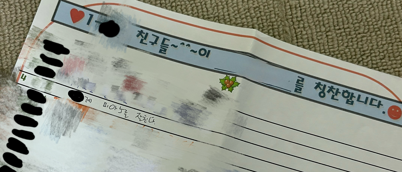 1년이 지나 학년이 올라가기 전 우리 반은 롤링페이퍼를 적었다. 친구들의 잘하는 점과 칭찬을 적는 거였다. 당시 나의 별명이 있었다. 낙이(별명)라고 한다면, 그 아이는 '낙이(별명)는 피아노를 잘 친다.'가 전부였다. 아쉬웠지만 별명을 써준 거에 만족했었다.