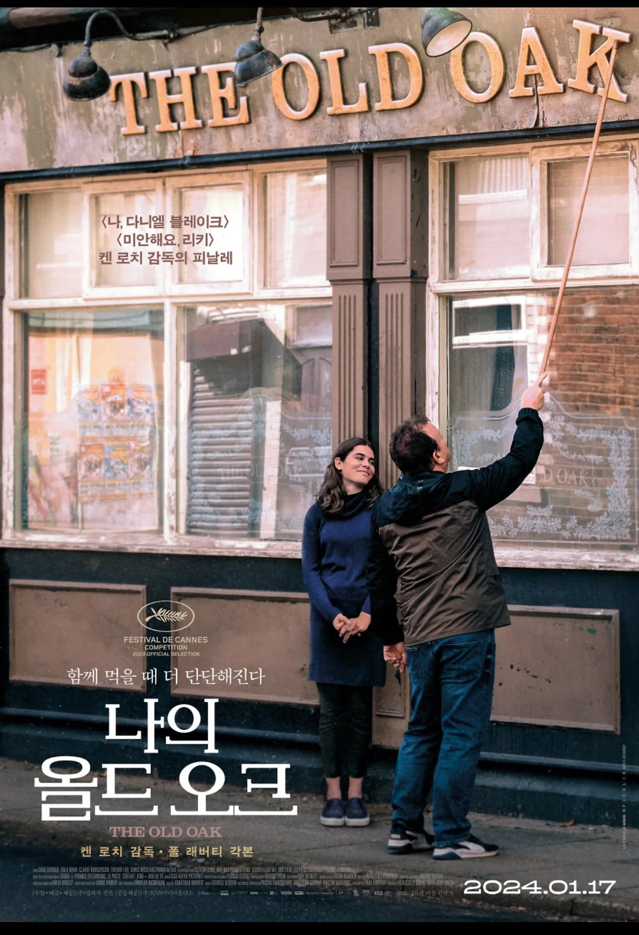 내가 <나의 올드오크>를 본 영화관에서는 상영을 시작하기 전에 켄 로치 감독이 새해인사와 함께 영화의 내용을 간략하게 정리해서 설명해주는 영상이 나왔는데, 그것이 너무 신기한 나머지 2024년에 극장에서 켄 로치의 신작(아마도 은퇴작)을 본다는 것의 의미를 생각하게 되었다. 영화제가 아닌 일반 극장 상영에서 감독이 관객에게 자기 영화의 주제를 먼저 말로 설명하는 일은 아무래도 드문 일인 것 같았기 때문이다. 어…? 뭐지…??? 난 이제 저 감독의 지침에 따라 영화를 봐야 하는 건가…? 이렇게 막 개입해도 되는 거…? 하는 생각이 잠시 스쳐지나갔다. 그러나 이내 지금까지 켄로치 감독이 영화를 만들고 또 관객들이 그의 영화를 봐오면서 쌓아온 관계가 이만큼이나 되는 거구나, 하고 납득할 수 있었다. 지금 우리가 켄 로치 감독 영화를 보러 극장에 온다는 것은, 그가 만든 어떤 다층적이고 시대적인 영상텍스트를 감상하러 오는 것이기도 하지만 켄 로치 감독이라는 오래 함께해 온 친애하는 사람을 만나러 오는 것이기도 하기 때문이다. 이 영화를 만들고 싶었던 이유는 무엇인지, 하고 싶었던 말은 무엇이었는지 기꺼이, 혹은 매우 반갑게 그의 말을 들을 수 있다. 그리고 앞으로도 더 기회가 있기를 바랄 뿐이다.