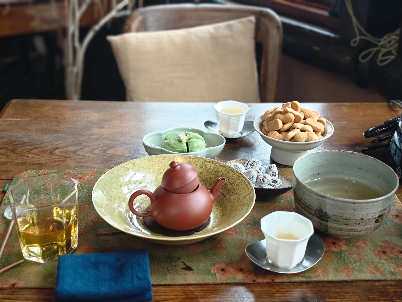 또 한 가지 장점은, 시간을 낭비한다는 불안을 덜 수 있다는 점이다. 아무것도 하지 않는 것처럼 보여도 차를 마실 때는 분주하게 움직여야 한다. 주전자를 기울이는 손이, 수색을 살피는 눈이, 향기를 맡는 코가, 데워진 잔의 온도를 느끼는 입술이, 맛을 느끼는 혀가 바쁘다. 내가 지금 너무 한량인 건(?) 아닌가 하는 자기비판에서 벗어날 수 있다.