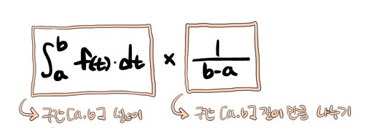 즉 27/4와 같은 넓이를 가지는 3분(가로길이)를 가지는 녹색 직사각형의 높이는 9/4가 됩니다. 이것을 주어진 구간에서의 함수의 평균값으로 정의합니다! 일반적으로 아래와 같은 식으로 t가 a에서 b까지 변화하는 동안의 주어진 함수 f(t)의 평균값으로 정의가 됩니다.