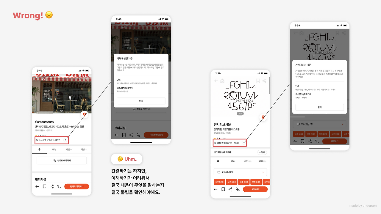 (내가 생각할 수 있는 최대의 대안이었다.. 캐치 테이블의 서비스톤과 UX Writing은 매우 훌륭합니다..!)
