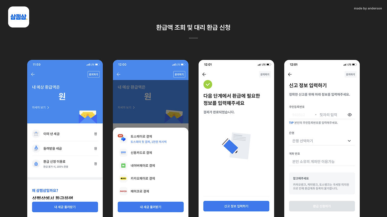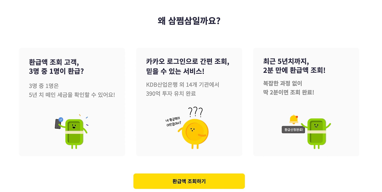 고객들이 삼쩜삼의 웹 페이지나 앱을 통해서, 간단하고 빠르게 세금 환급금을 조회할 수 있고