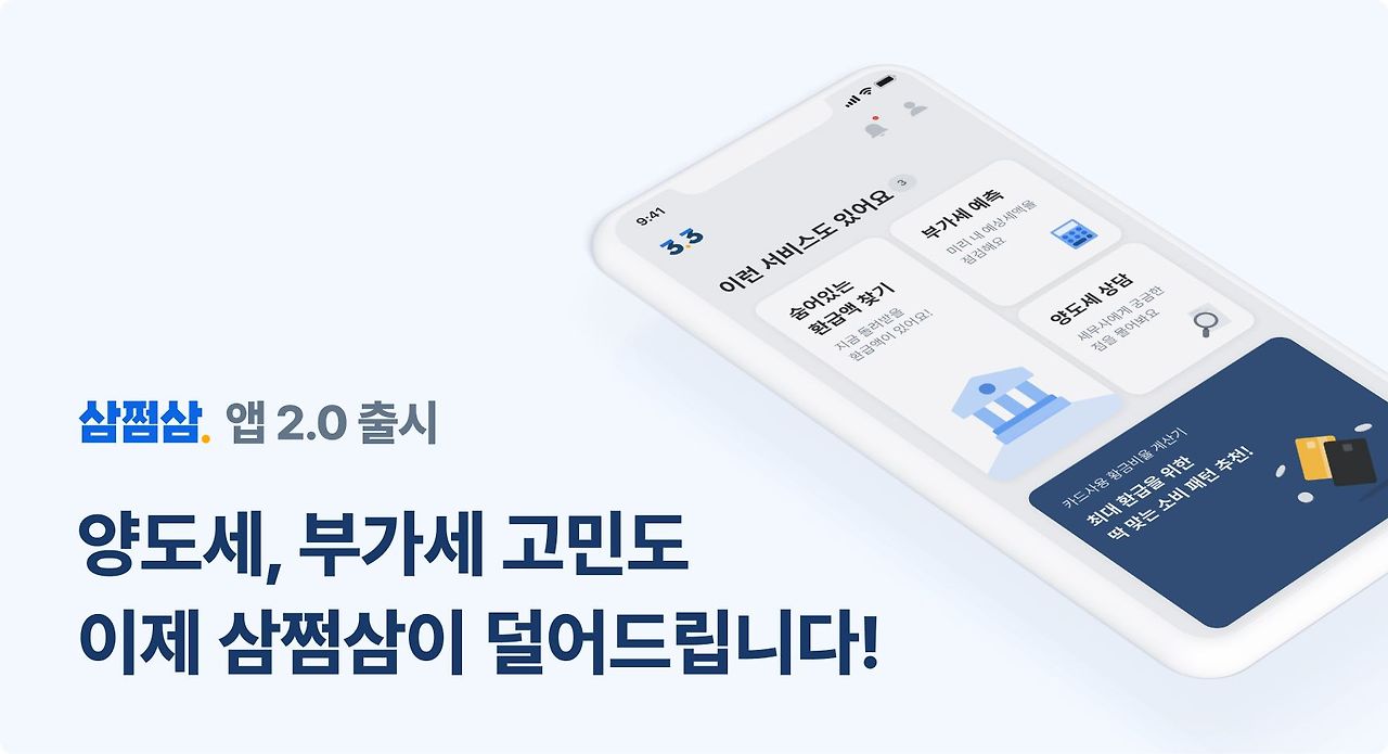 최근에는 부가세 예측, 양도세 상담등과 같은 서비스가 추가된 삼쩜삼(2.0)으로 업데이트를 하는 등