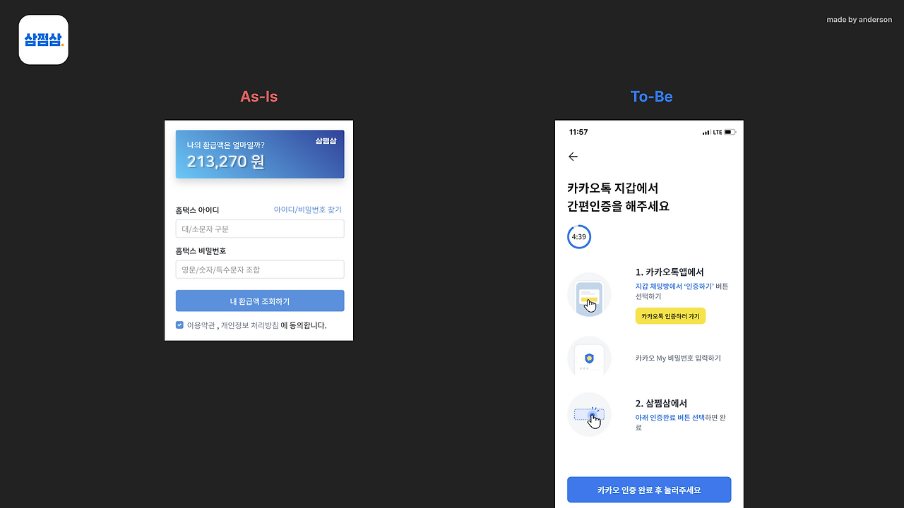 복잡하고 어려웠다면 이탈로 충분히 이어질 수 있었으나, 아주 간단하게 카카오톡으로 간편 인증을