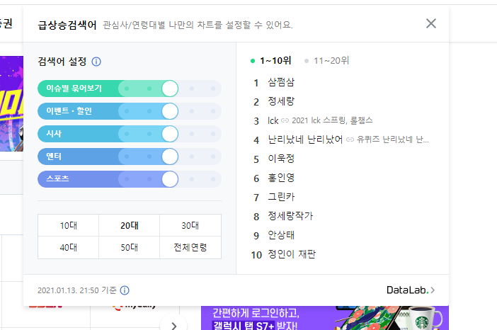 시간이 얼마 흐른 뒤,갑자기 실시간 검색어 순위에 삼쩜삼이 1위를 자리하고 있는 모습을 발견하고는