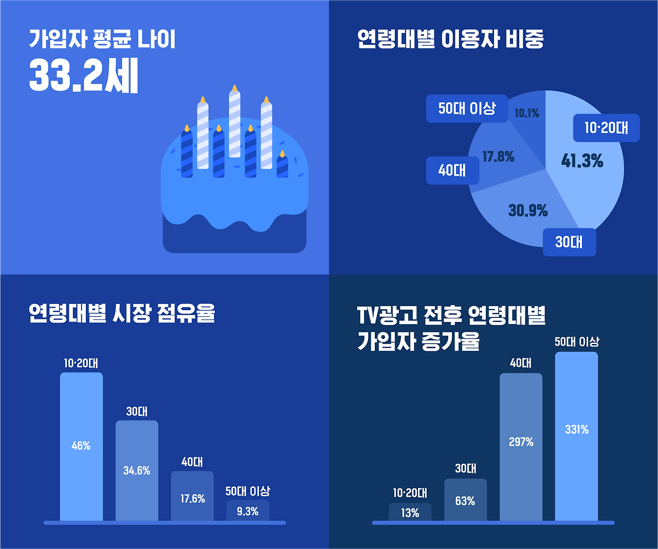같은 기간 30대 이하 고객의 증가율이 36%라는 점을 감안한다면