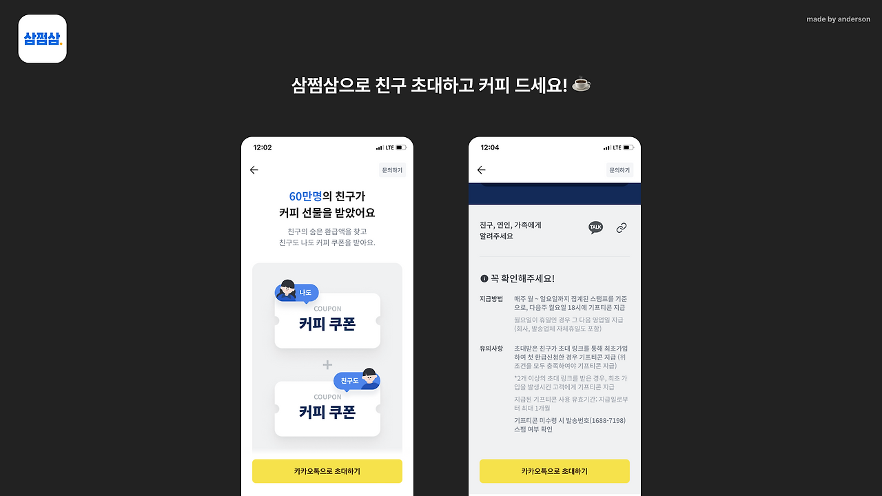 초대한 본인과, 친구까지 모두 커피 쿠폰을 받을 수 있다.