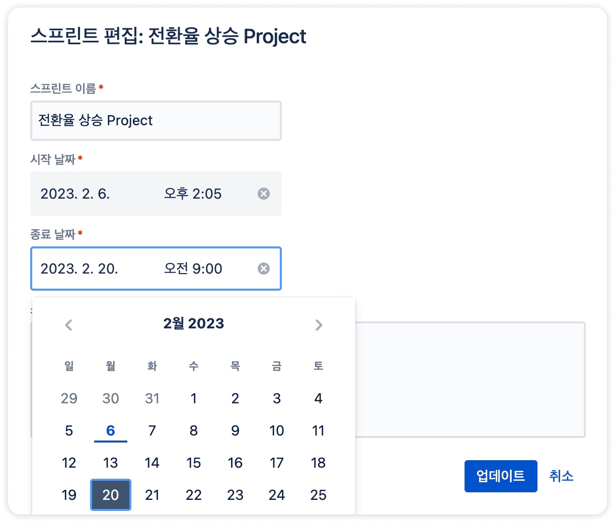스프린트 기간을 구체적으로 설정할 수 있는 Jira
