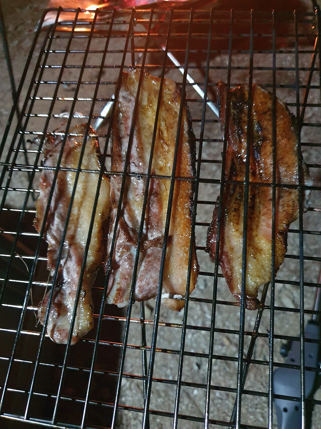 캠핑장은 무척 한적했다. 강 건너에서는 무슨 축제라도 하는지 구성진 트로트 소리가 울려 퍼졌다.