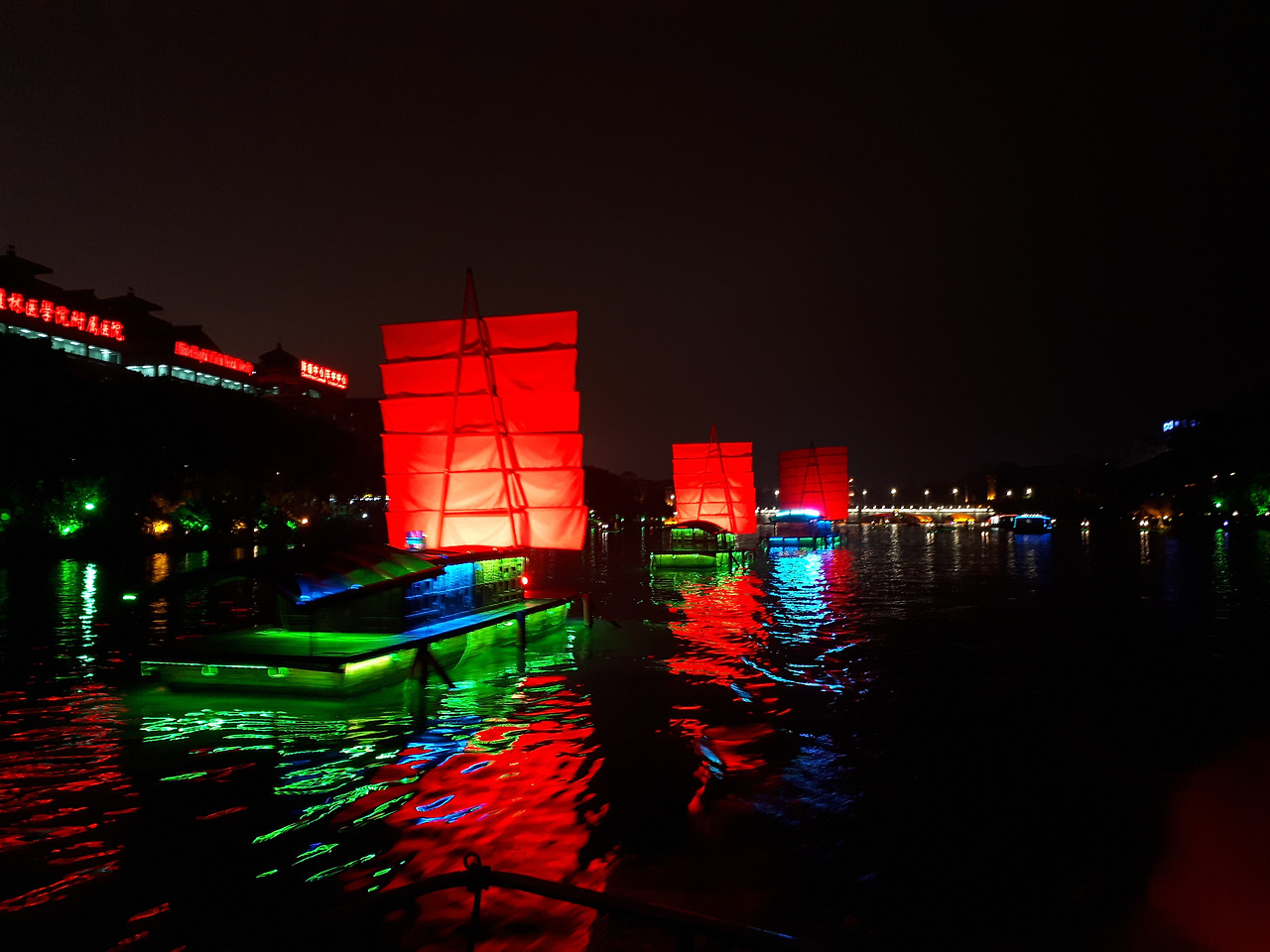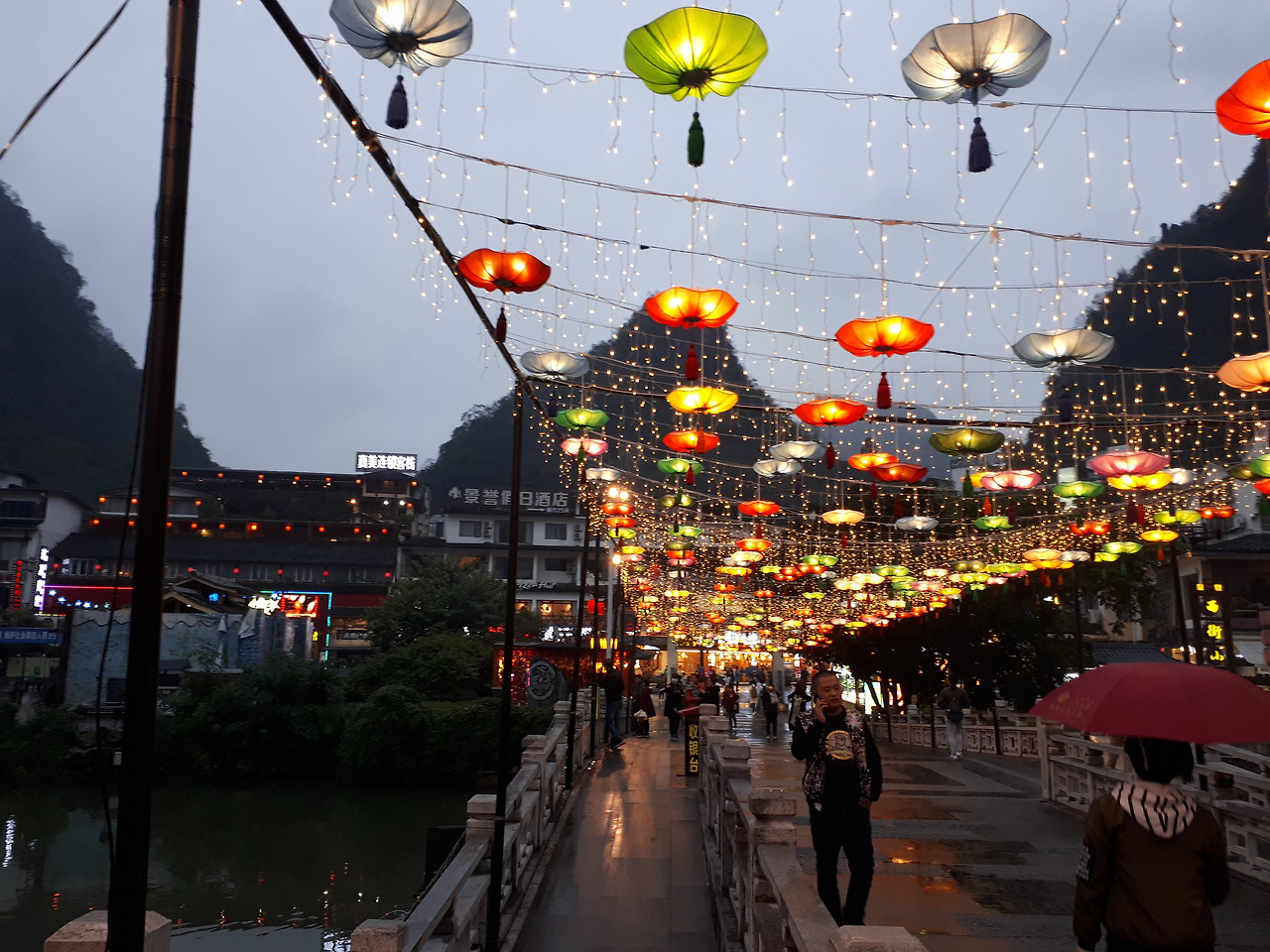 몇 날 며칠 계속 내리는 비에 저녁까지 도로가 질척했다. 비는 오고 앞차를 따라 그냥 밀려가듯 도착한 곳은 6000개의 객석을 가진 인상유삼저 공연이었다. 장이모인지 삼모인지 유명한 영화감독이 연출했다는데 내용은 알 수가 없었지만 비가 오는 날인데도 우비까지 입고 앉아 구경하는 관객이 무척 많은 것에 놀랐고 공연하러 나온 연기자들의 숫자에 한 번 더 놀랐다. 난생처음 보는 관경에 눈이 호강을 했다.