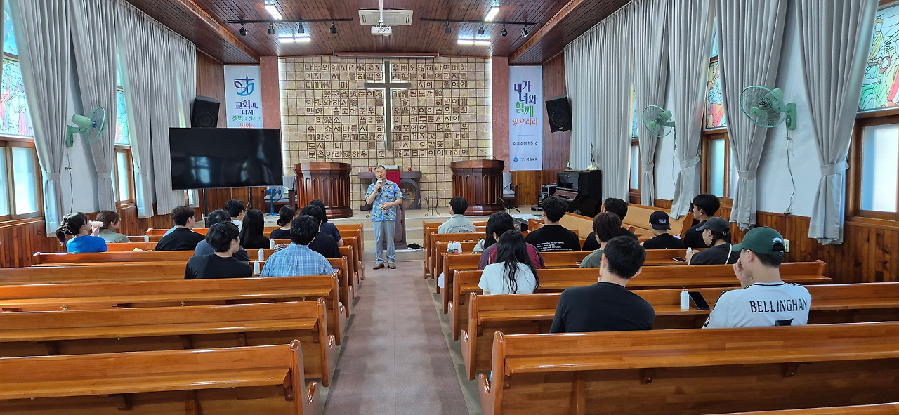 오늘은 원바디 청년들이 복길교회를 방문하는 날이다. 오전에 미디어교육을 중간에 나와서 복길교회로 향했다. 증도에서 온다고 10분 늦게 온다고 전화가 왔다. 복길교회는 전에 내가 시무했던 교회다. 목사님은 휴가를 떠나서 없다. 장로님이 나와서 환영해 주었다. 함장로 님은 음료수를 사서 주셨다.