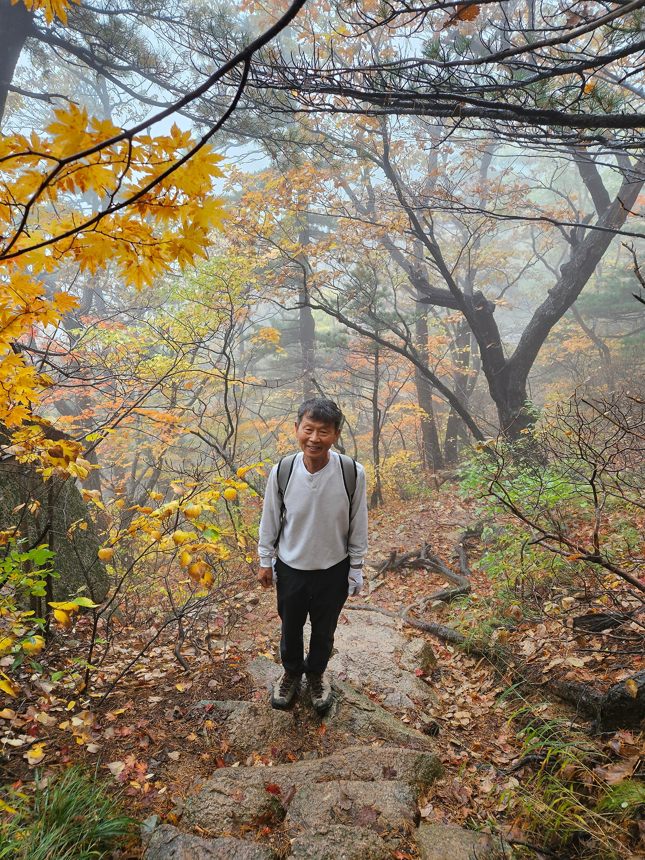 비가 조금 오는 가운데 등반했는데 등산 인원은 많지 않았다. 오고 가며 만나는 사람마다 인사를 건네고 정보를 물어본다. 대청봉에는 눈이 왔다고 한다. 우리가 오른 곳은 1,000미터 정도이다. 단풍이 아름다웠다. 한강희목사는 사진을 잘 찍지 않았는데 지금은 사진도 찍고 영상도 찍었다. 오전 9시에 출발해서 하산시간은 4시 41분이다. 거의 8시간을 걸었다. 나보다 많은 분들이 앞서갔다. 총걸음수는 4만보다. 백담사에서 셔틀버스로 주차장까지 갔는데 많은 등산객들이 줄을 선다.