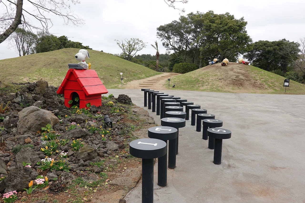 제주시 구좌읍에 위치한 2만 5천 평 규모의 자연 휴식형 테마파크'스누피가든'이에요. 어른, 아이 할 거 없이 전 세계인의 사랑을 받는 캐릭터 스누피와 솔직하고 개성 있는 피너츠 친구들이 만나 상호 관계를 통해 일상 속의 공감과 위로의 메시지를 주는 곳이랍니다. 전시관, 카페, 스토어, 가든으로 구성된 곳으로 아이들과 함께 가 볼 만한 곳으로 사랑받는 곳이에요.