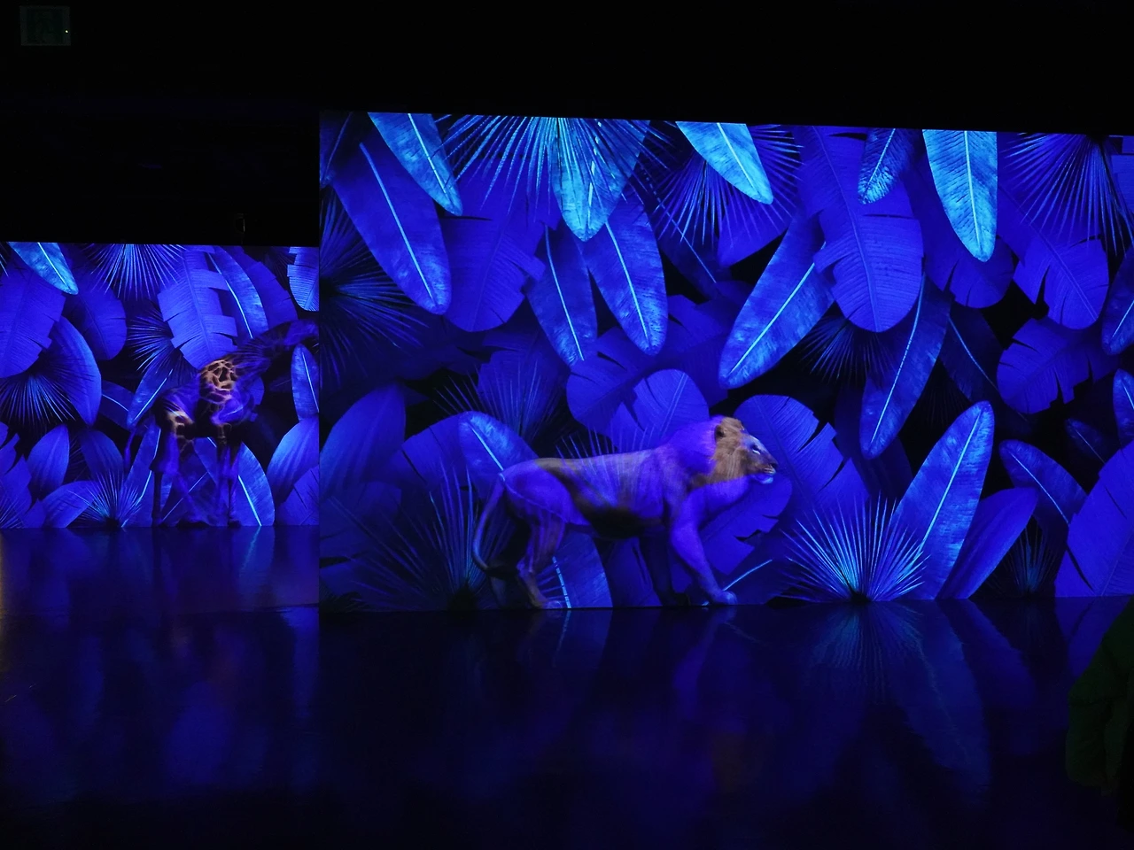 아르떼뮤지엄 제주에는 화려하고 웅장한 작품들이 다양하게 전시되고 있는데요. 그중에서도 손꼽는 유명 작품은 ‘트로피컬 열대우림 속 변신의 정글’이라고 해요. 감각적인 음향과 함께 움직이며 변하는 작품을 보고 있자니 저절로 작품 속으로 빠져들 수 밖에 없었어요.