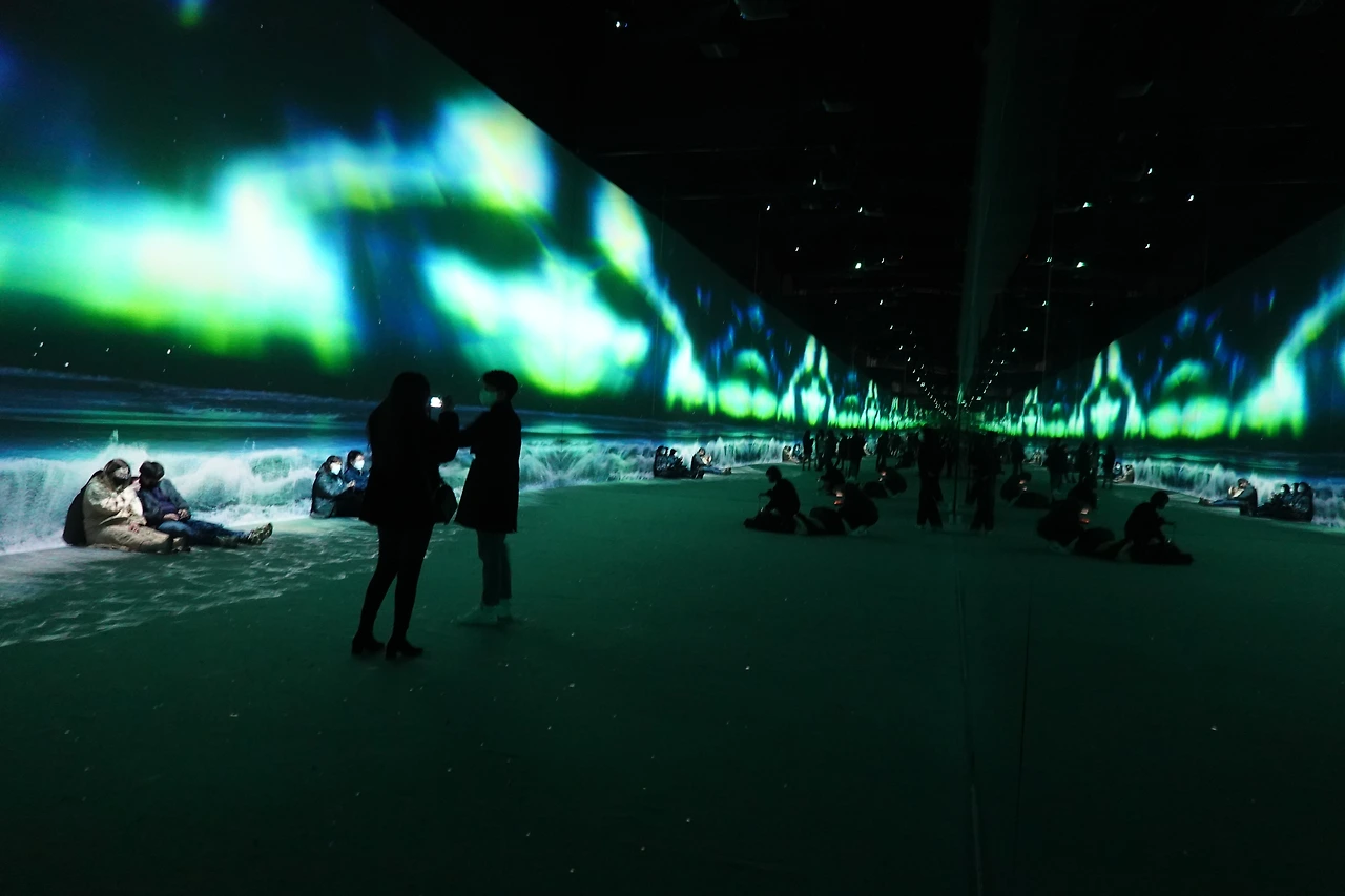 안개 방을 지나면 나타나는 대망의 하이라이트! 넓은 원형의 공간 안에서 흘러나오는 웅장한 음향과 함께 눈앞에 펼쳐지는 형형색색의 불빛 쇼가 기다리고 있었어요. 화려한 불빛 쇼가 주제별로 이어지는데 주제가 바뀔 때마다 나오는 음악도 함께 바뀌었어요. 감상하고 있는 사람들과 밀당하는 느낌이랄까!