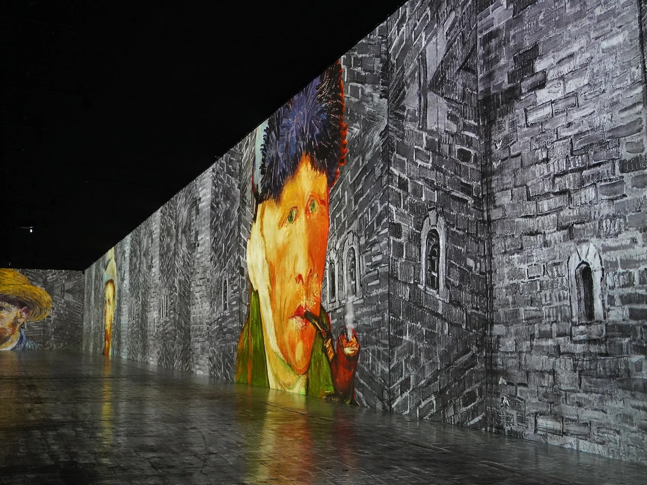 각 화가의 작품들은 15분씩 반복적으로 전시가 되었는데요. 내부 중간중간에 세워진 기둥과 벽이 있어서 같은 작품이라도 다른 각도에서 다른 느낌으로 작품을 다시 감상할 수 있었고, 벽에 기대어 앉거나 바닥에 앉아서 계속해서 바뀌는 작품을 가만히 감상하는 분들도 많았어요.