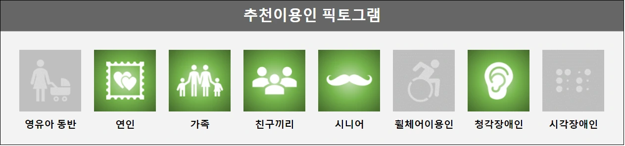 ★ 장애인 화장실 ○ (폭이 좁아서 이용하기 어려움), 장애인 주차구역 ○ ★