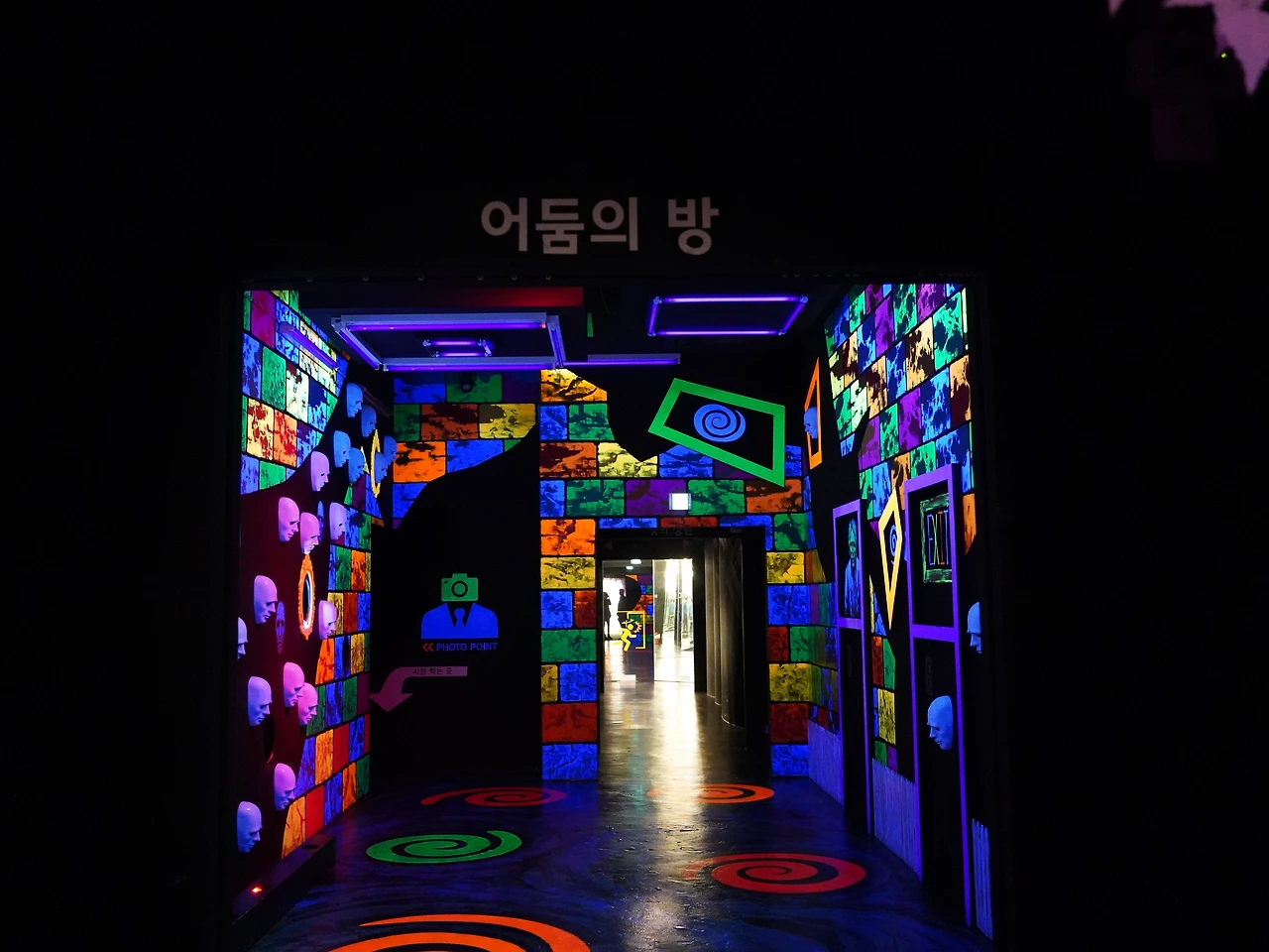 어둠의 방 ‘사진 찍는 곳’ 통로는 휠체어가 회전할 수 있는 공간이 협소해요.