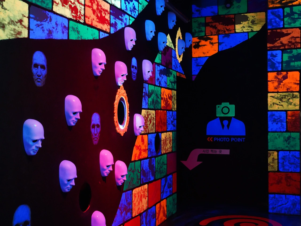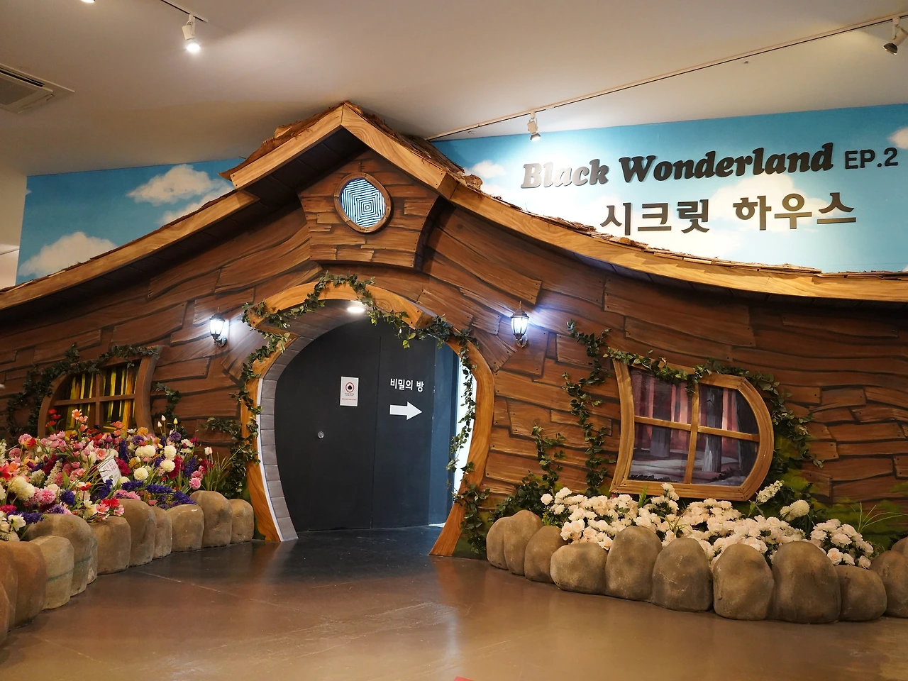 <테마2: 블랙 원더랜드 시크릿 하우스> 시크릿 하우스 안에서 펼쳐지는 7개의 다른 공간을 느껴 볼 수 있는 곳인데요. 말만 들어도 두근두근 하지 않나요? 이곳은 ‘어둠 속에서 만나는 판타지 이야기’라는 테마로 5개의 방과 2개의 길로 구성되어 다양한 재미를 느낄 수 있는 곳이에요.