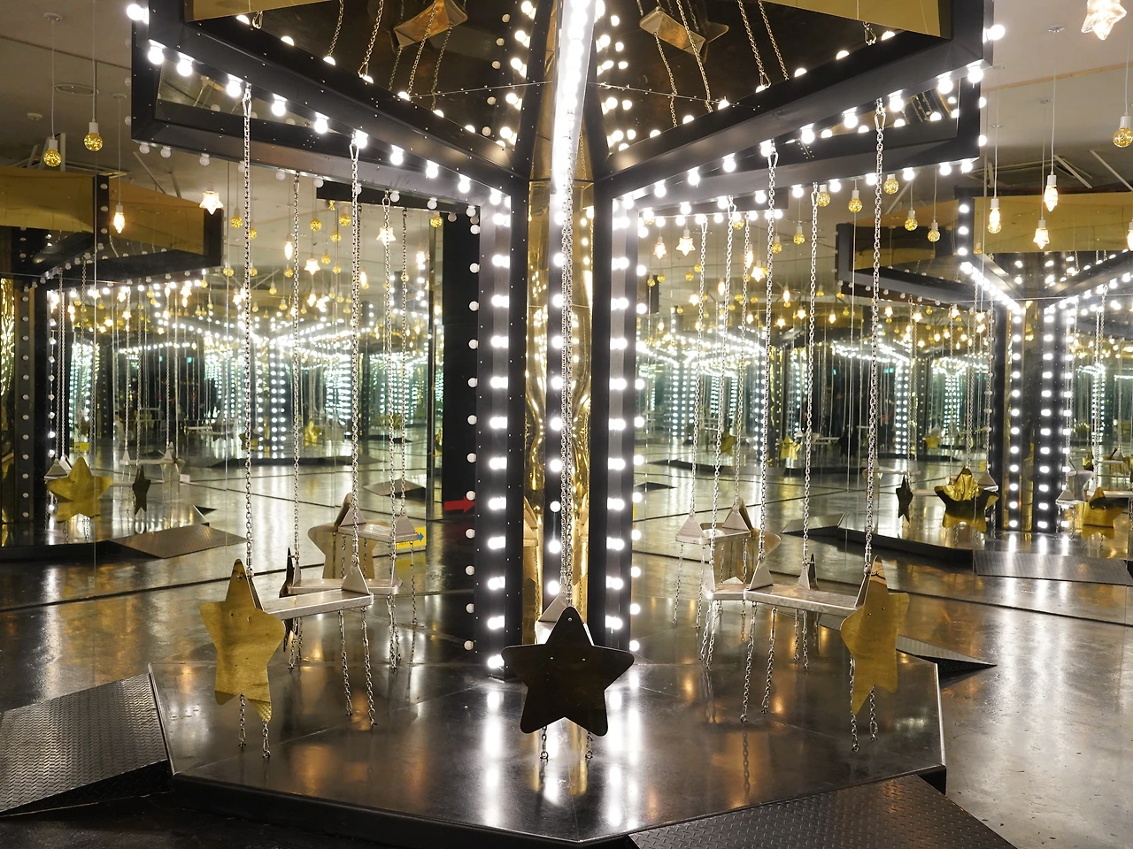 빙글빙글 그림자 마술 ‘빛의 정원’을 지나 인생사진을 남기고 갈 ‘별빛 그네 방’이 나타나는데요. 거울 벽에 반사되는 무한한 별빛들이 너무 아름다웠어요. 다른 건 몰라도 ‘별빛 그네 방’에서는 인생사진 한 장씩 남기고 가시면 좋을 것 같아요.