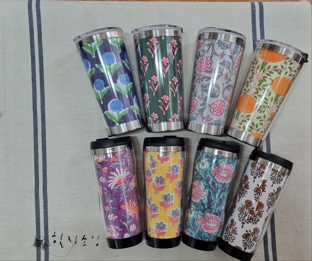 어느 날, 친구에게서 텀블러를 만들어 보라는 권유를 받았고 실행에 옮겨보았다. 웬걸~너무 예쁘기도 했고 코로나 시대이기에 더욱 쓸모 있고 만족도 높은 소품이 되었다. 지구를 살린다는 명목도 있고 이쁜 원단을 이용해 나만의 텀블러도 탄생시키다 보니 좋아하시는 분들이 꽤 많았다. '이거다!! 이거야!!'