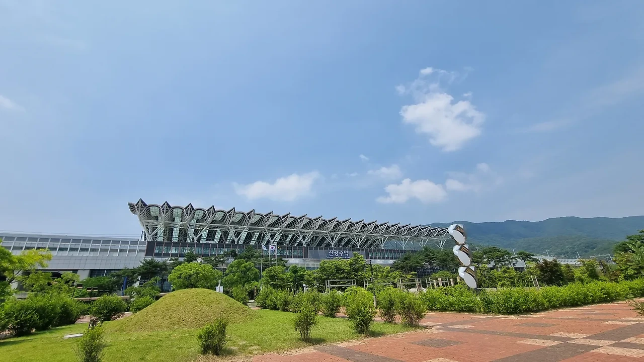 신경주역에 도착했다. 푸르른 풀과 나무들이 눈을 상쾌하게 해 주었다. 역사로 걸어 들어가는 발걸음이 매우 가벼웠다. 룰루랄라 콧노래도 나올 지경이다.