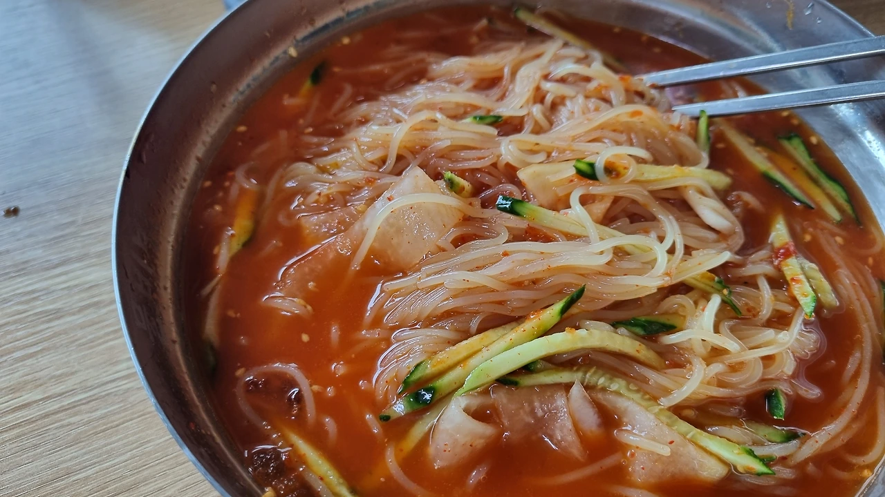 모두가 물밀면을 먹을 때 나는 물비빔을 먹었다. 비빔보다 국물이 있고 물밀면보다 더 진한 맛이 있다. 이도저도 아닌 어중간한, 딱 내 스타일의 메뉴라 나는 이것만 고집한다.