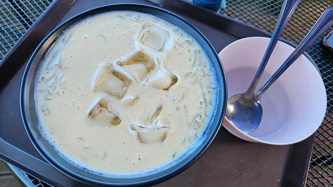 보도교 입구 커피숍에 우뭇가사리콩국을 파는 걸 봤다는 신랑이 한 그릇 먹고 가자고 했고, 이야기가 끝나기도 전에 나는 벌떡 일어섰다. 시장에서 참 많이 보이 던 건데 직접 사 먹은 건 처음이었다. 고소한 콩국에 으깨지는 우뭇가사리는 금세 입안에서 사라졌다. 헤이즐럿향이 나는 커피도 더위를 금세가 셔줬다.