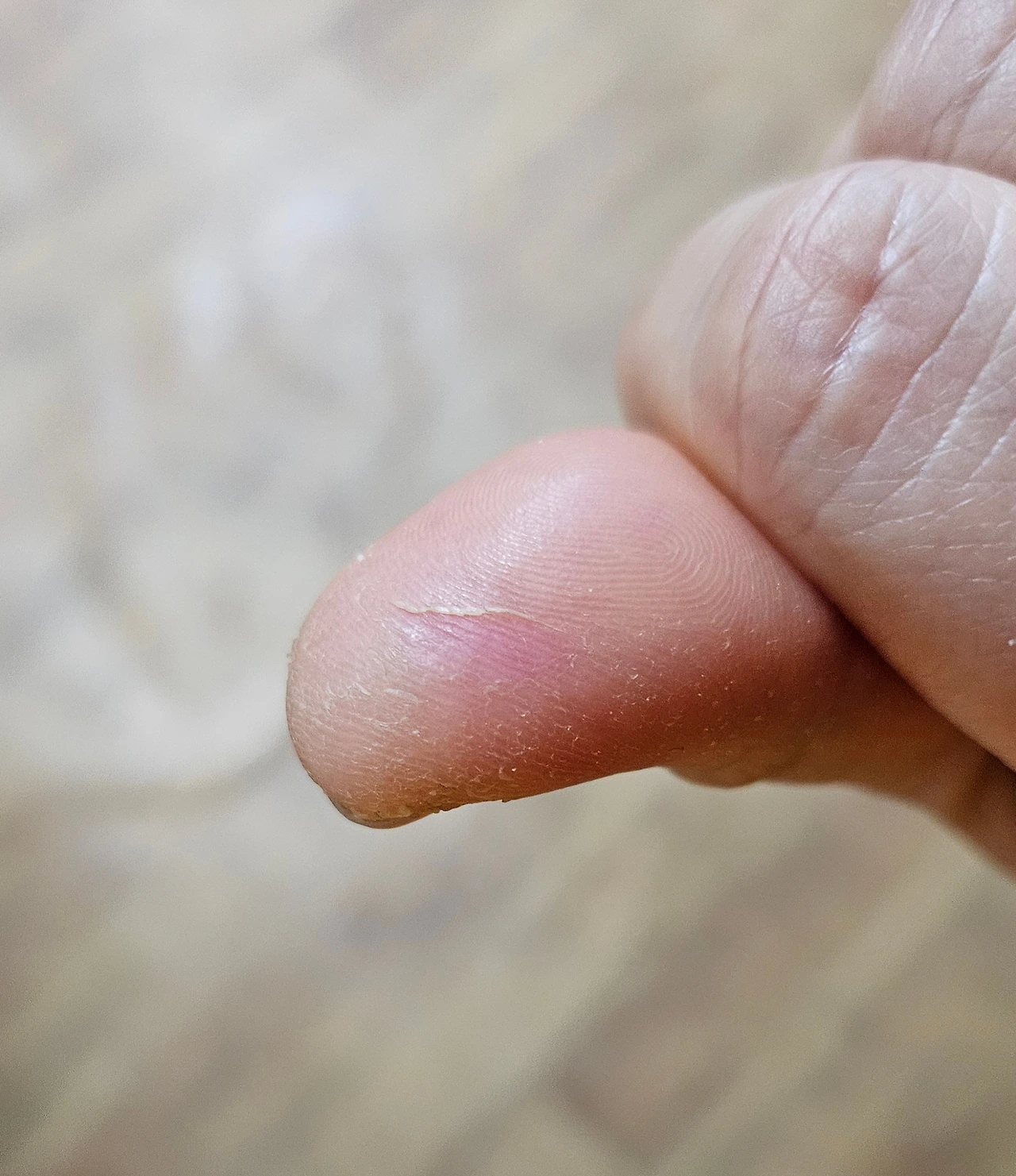 어디에 다 인 것도 아니다. 단지 알코올과 알코올솜을 많이 만져서 갈라지는 일종에 직업병 같은 거다.
