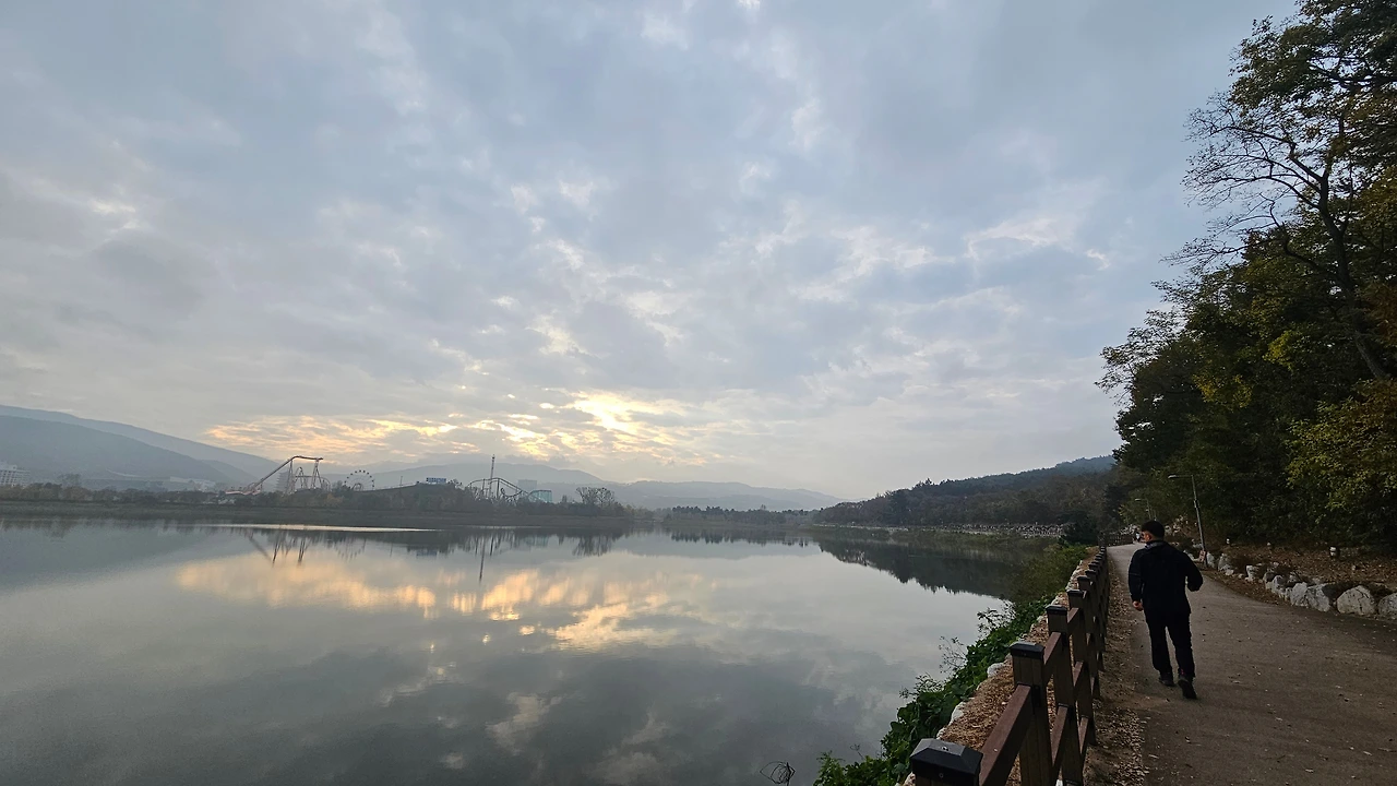 보문호수에 도착하니 7시 14분. 오랜만에 오니 설레기도 하고 아직 뜨겁지 않은 날씨가 봄처럼 시원했다. 호수로 들어서니 안개가 뿌옇게 낀 게 몽환적인 분위기를 연출했다. 유유히 떠가는 오리 떼들이 여유로워 보여 한참을 쳐다보기도 했다. 사진 찍으랴, 즐기랴, 신랑을 쫓아가랴 바빴지만 나름 상쾌하고 즐거운 산책이었다.